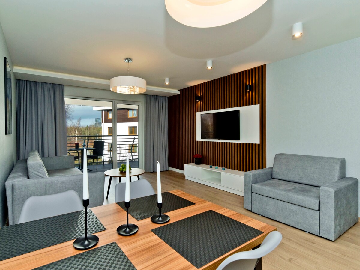 Apartment Na Klifie D2 on täysin suunniteltu ja mukautettu jopa 4 hengelle. Se koostuu olohuoneesta, joka on yhdistetty täysin varustettuun keittotilaan ja kylpyhuoneeseen. Nukkumisvaihtoehto on mukava parivuode (160 x 200) ja vuodesohva, jossa on nukkumistoiminto