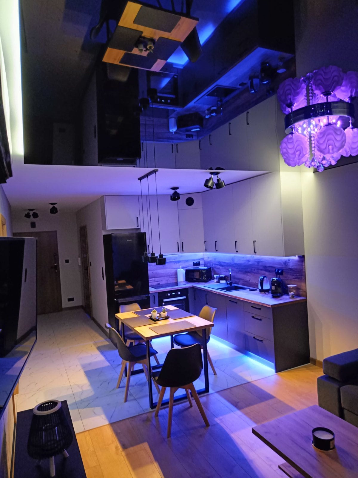 Huoneistossa on oma, moderni ja tyylikäs tyylinsä. Se on uusi, puhdas, valoisa, kodikas ja hyvin varusteltu. Sijaitsee 4. kerroksessa rakennuksessa, jossa on hissi. Itsepalvelusisäänkirjautuminen. Maanalaisessa autotallissa on myös oma ilmainen pysäköintialue. Lähellä on alueen suurin ostoskeskus KAIKU, ja siellä on monia nähtävyyksiä, kuten kauppoja, ravintoloita, elokuvateatteri,keilahalli, kuntosali. Sen vieressä on Solidarności Avenue, jossa on hyvä julkinen liikenne. Täällä tunnet olosi mukavaksi. Tervetuloa :)