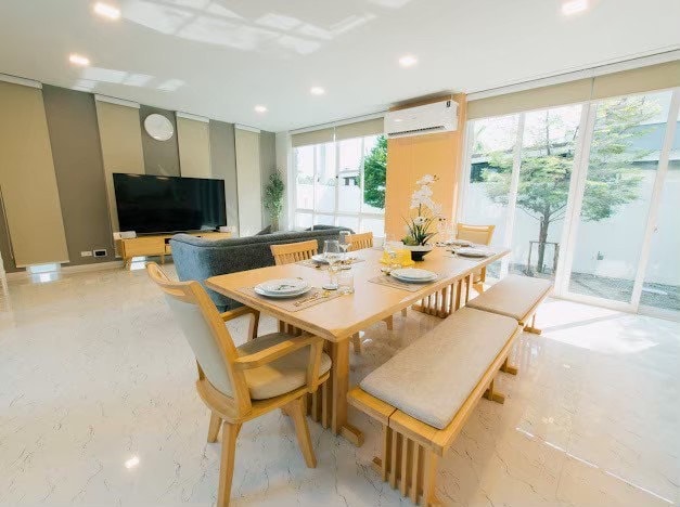 🏡Ylellinen uima-allashuvila, 3 makuuhuonetta, 3 kylpyhuonetta Koe yksityisyys suolaisen veden uima-altaalla, ✔️biljardipöydällä, ✔️grillillä, täysin varustetulla ✔️keittiöllä, ✔️tilavalla ja tyylikkäällä sisustuksella, joka on täydellinen paikka premium-lomalle. Lähellä turistinähtävyyksiä. Talo on tyylikkäästi sisustettu. Olotila talon sisä- ja ulkopuolella on täydellinen rentoutumiseen tai erityisten tapahtumien juhlimiseen. Lähellä turistinähtävyyksiä. Helppo liikkua kauniiden auringonlaskunäkymien ansiosta. 3 000 bahtin ✨✨talovakuutus (check out night)✨✨ ❌ Talossa ei saa tupakoida ❌ Ole melko paljon klo 23 jälkeen ❌ Ei enempää kuin vieraiden lukumäärä. ❌ Laittomia aineita ei sallita.