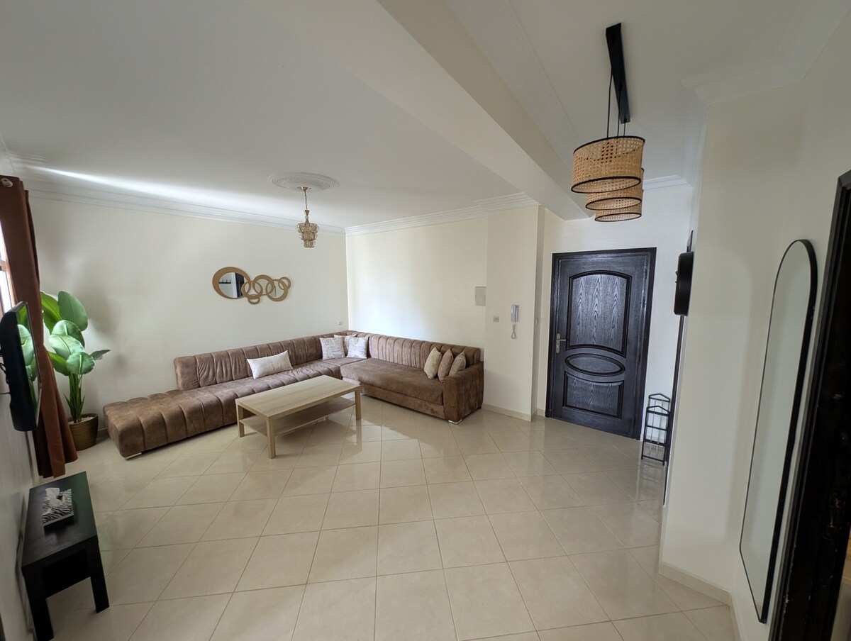 Rentoudu tässä hiljaisessa ja tyylikkäässä huoneistossa, lähellä : (Ajomatka) - 5 minuutin päässä Tangerin kansainväliseltä lentokentältä - 5 minuutin päässä Tangerin vapaasta vyöhykkeestä. - 5 minuutin päässä University Hospital Centeristä (CHU). - 5 minuutin päässä lääketieteen tiedekunnasta - 5 minuutin päässä diplomaattisesta metsästä. - 8 minuutin päässä kaupungin uudesta rannasta, Ibn Battuta. - 16 minuutin päässä Herculesin luolista - 30 minuutin päässä Asilah Savuton huoneistosta.