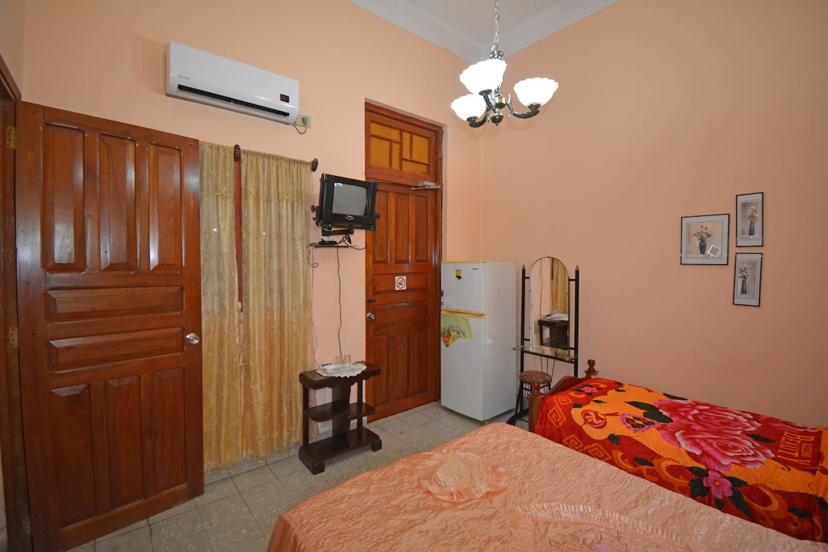 Colonial house, independent, only for the guests, with kitchen, newly repaired,with capacity for 6 very spacious people with a cozy terrace,located the prado Cienfueguero (main street),from this central accommodation the entire group can have easy access to the main places of the city,the host is available to provide information and help the guests in the organization of their trip, if you want can prepare breakfast and meals,help with taxi.
