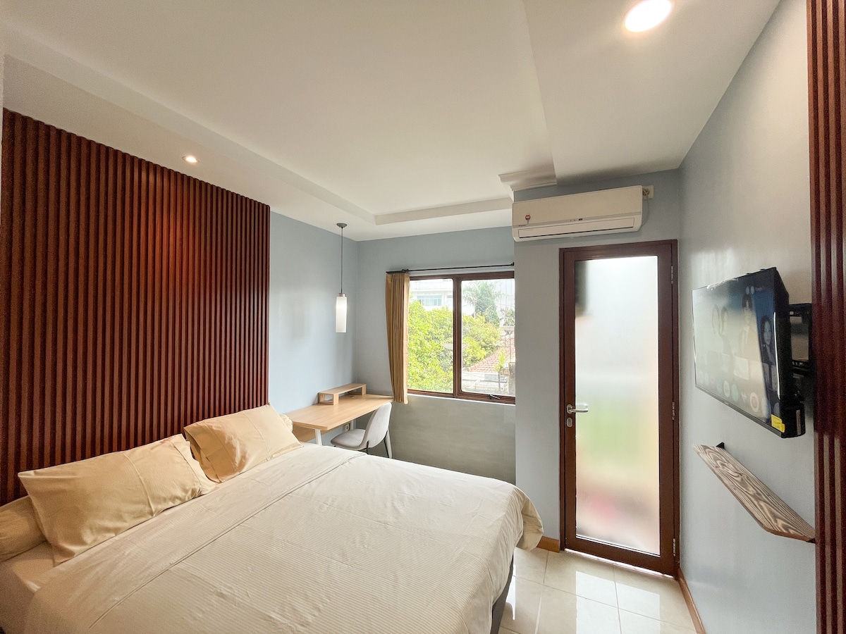 Peaceful industrial style studio apartment with mountain view at strategic location in Ciumbuleuit Street. 10-20 minutes to shuttle bus, Bandung Station, and airport. 5-10 minutes to universities (UNPAR, ITB, UNPAD) 5-30 minutes to mall, city center, and tourism area (Cihampelas, Dago, Lembang, Gedung Sate, Sudirman Street Food, etc) There are provided 2 single beds (size @120x200) that could be combined into 1 large bed by request. We also provide 1 additional folding bed with extra charge.