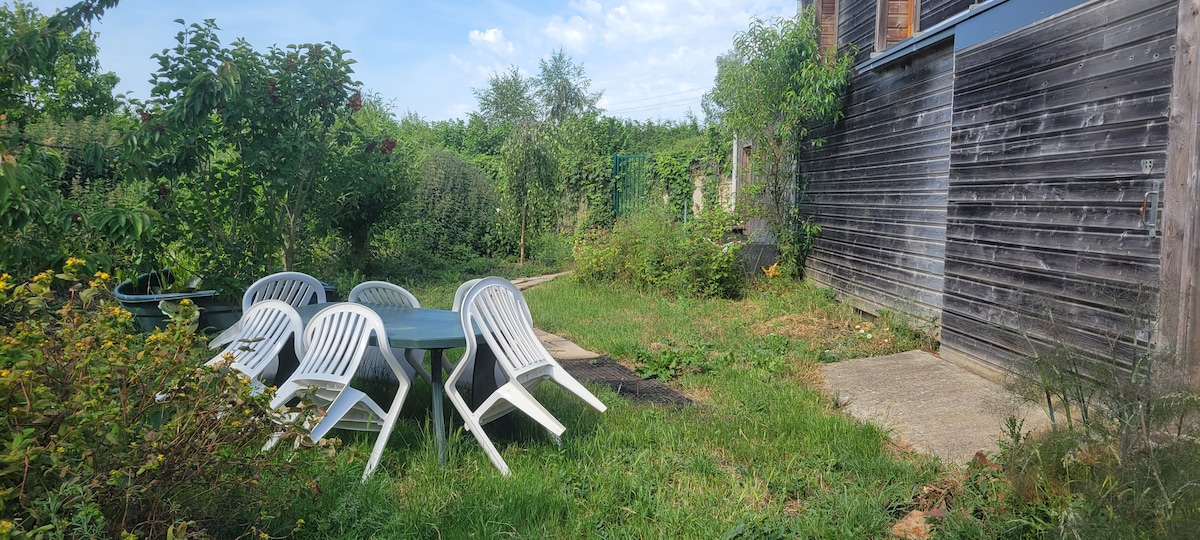 48 m2:n itsepalveluhuoneisto, jossa on kaksi erillistä makuuhuonetta, erillinen keittiö ja ruokailuhuone. Huoneisto on yläkerrassa, ja kylpyhuone ja wc ovat pohjakerroksessa (pieni kerros). Erittäin hiljainen ja erittäin valoisa, sinulla on henkeäsalpaava näkymä 2 hehtaarin metsäpuutarhaan CREAFRUIT-maatilalta (monipuolinen luomupuutarha, jossa harjoitetaan peltoviljelyä). Yksityinen puutarha, jossa on grilli. Sijaitsee 15 minuutin ajomatkan päässä metsästä, 30 minuutin päässä merestä ja 5–10 minuutin päässä kaikista mukavuuksista.