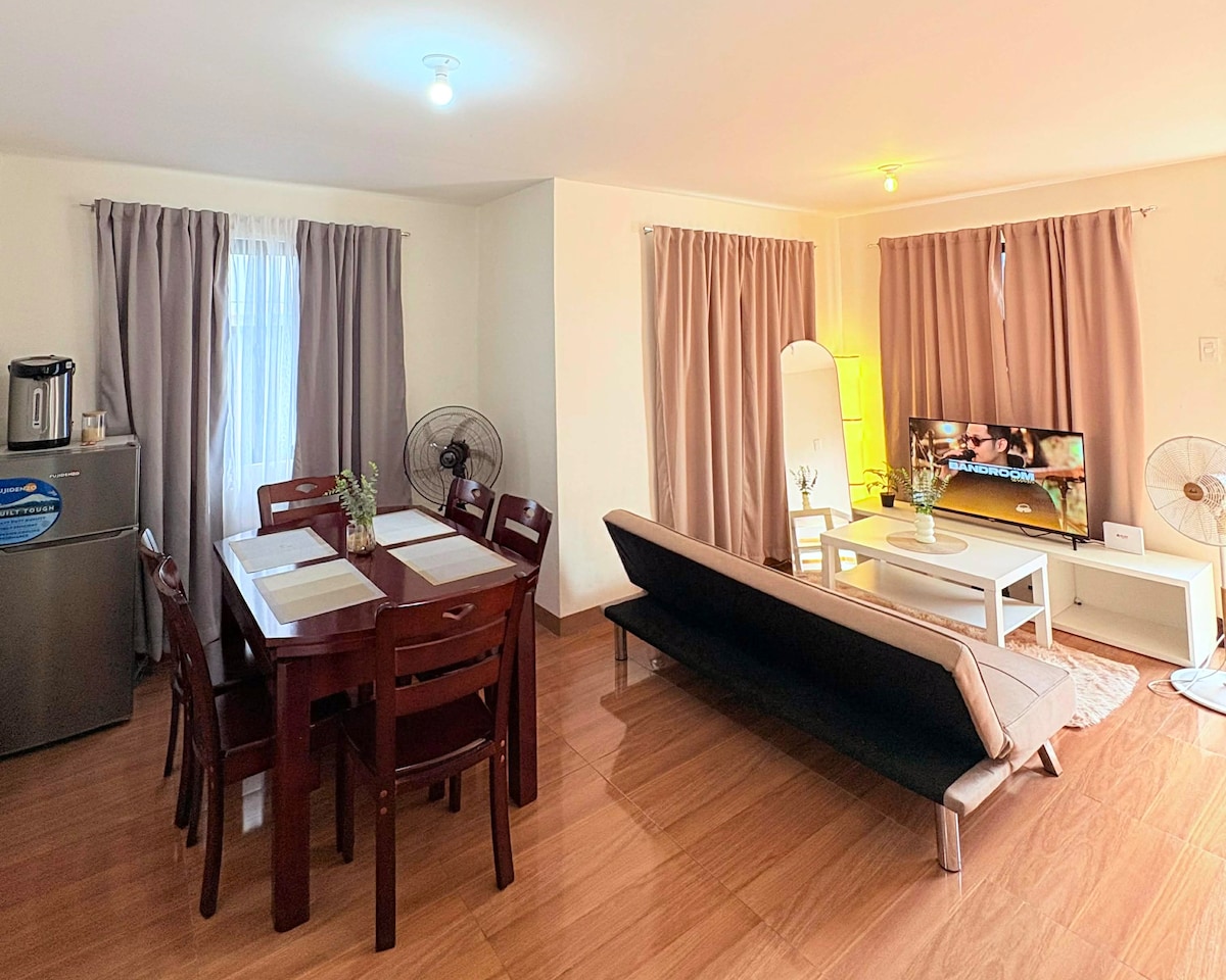 Tämä tyylikäs majapaikka sopii täydellisesti pariskunnille tai pienille perheille. Kohteemme sijaitsee strategisesti Valley Oaksin Lucena Cityn osastoalueella. Kelseyn asunto on lähellä seuraavia paikkoja: - Mothers wonderland - Lucena United Doctors - Eco tourism road - Kansallinen valtatie, joka menee Bicoliin tai Manilaan - Lähistöllä on ruokapaikkoja, kuten Max's, McDonald's, Cafe Jungle ja muita paikallisia ravintoloita - Lähellä muita kauniita kaupunkeja, kuten Sariaya, Tayabas, Lucban jne. Voimme majoittaa korkeintaan 3 henkilöä lisävuoteella minimaalisella hinnalla