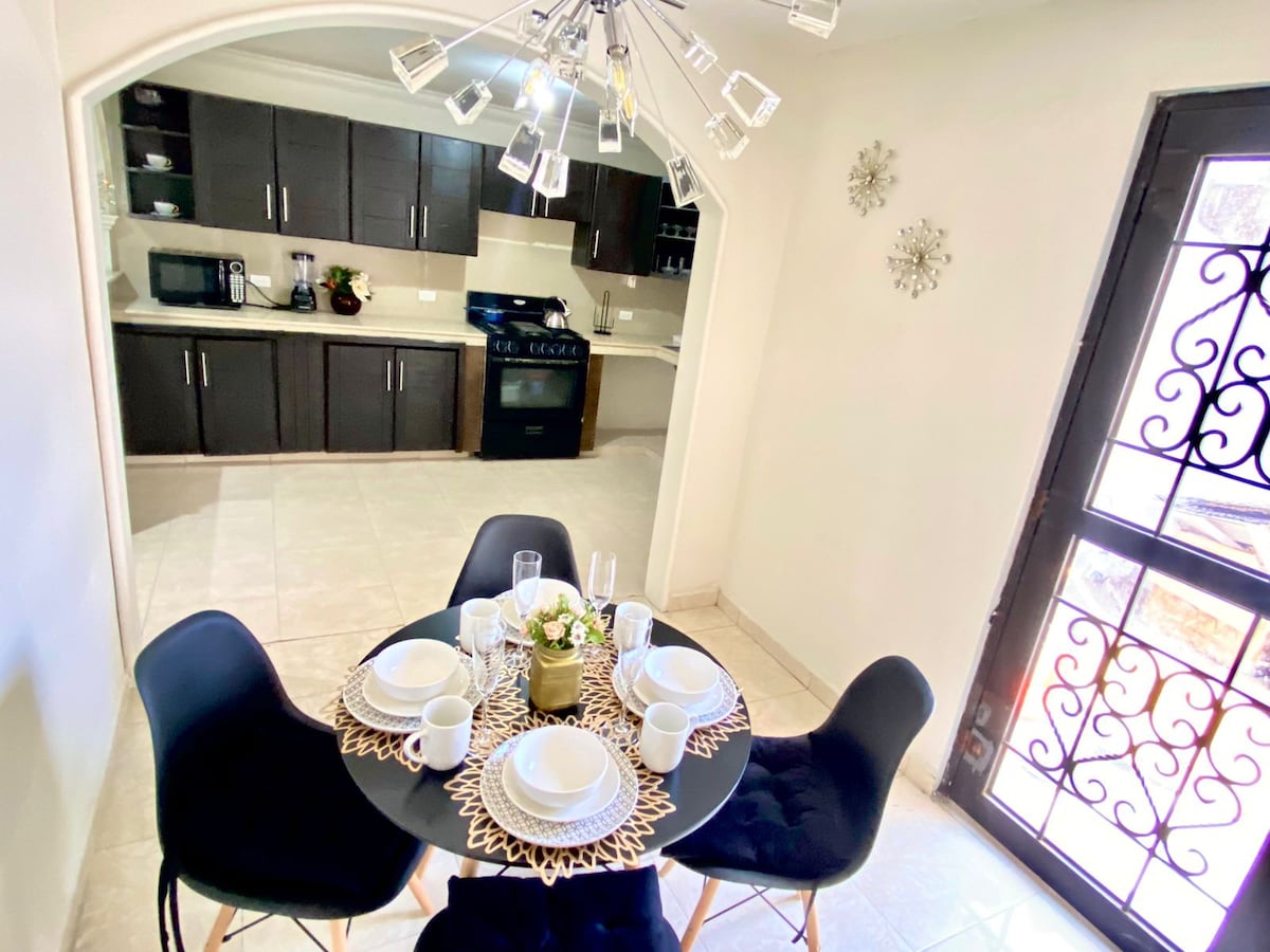 Nauti tilavasta ja mukavasta 3 makuuhuoneen talosta, joka sopii erinomaisesti työ- tai perhematkoille. Sijaitsee lähellä lentokenttää ✈️ ja teollisuusalueita, ja sieltä on helppo pääsy Monterreyhin, Foundressiin ja kansainvälisten tapahtumien, kuten FIFA:n⚽, keskeisiin tapahtumapaikkoihin. Rentoudu puutarhassa grillin äärellä🔥, lepää mukavissa vuoteissa ja nauti tilasta, joka on suunniteltu käytännöllisiä ja miellyttäviä majoittumisia varten.
