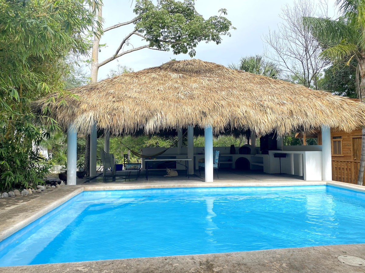 Departamento dentro de la propiedad, absoluta privacidad, con área abierta para pasar una velada agradable, con asador y sombra de árboles frutales. Esta situada, en una colonia muy tranquila y bien ubicada. Últimamente hemos tenido problemas con el suministro de agua, como en todos lados, por lo que se pide se cuide mucho este recurso, en las noches tenemos poca presión pero en las mañanas hay suministro normal.