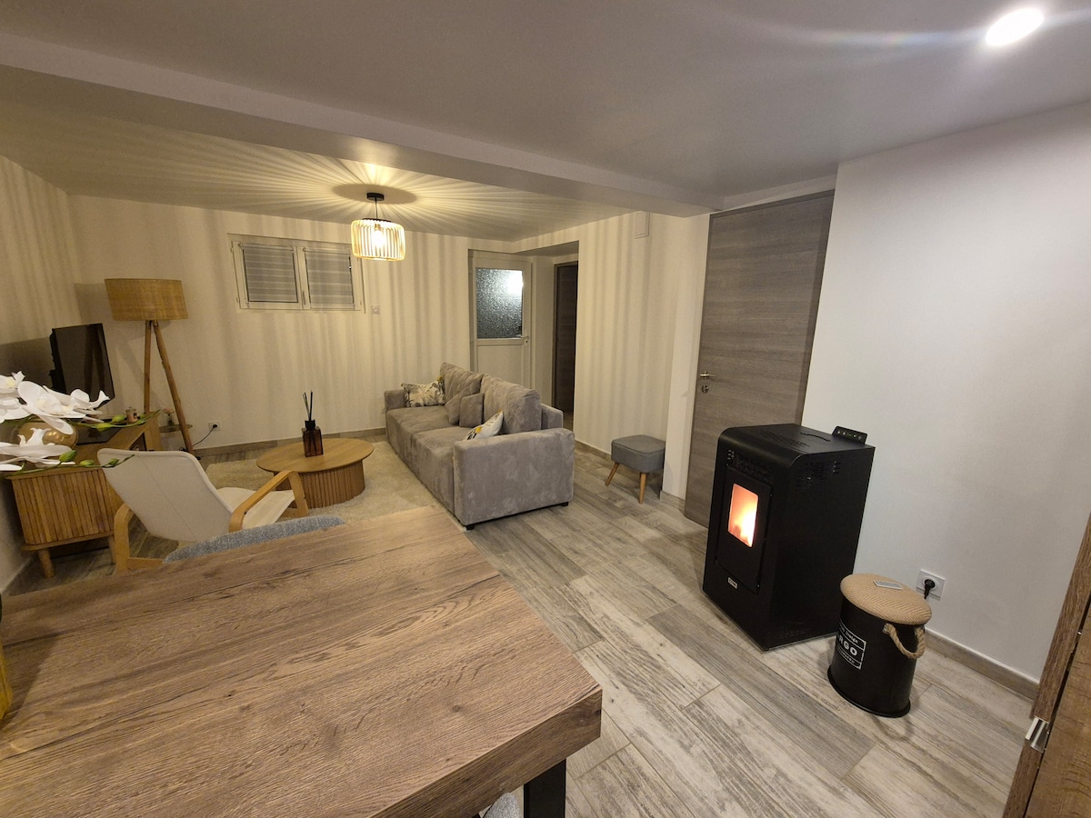 ** 1M85 korkea katto ** Cozy studio of 23m2 fully renovated! located 15min walk from the TER Lentilly train station and 25min drive from Lyon, you will be in the heart of West Lyon and at the gates of the Monts du Lyonnais and Beaujolais! 45min from Lac des Sapins and 1h15 from the Chalmazel ski resort. Nauti 600 m2:n puutarhastamme ja uima-altaastamme kesällä (ei yksityinen) Ihanteellinen 2 aikuiselle tai 2 aikuiselle + 1 lapselle.