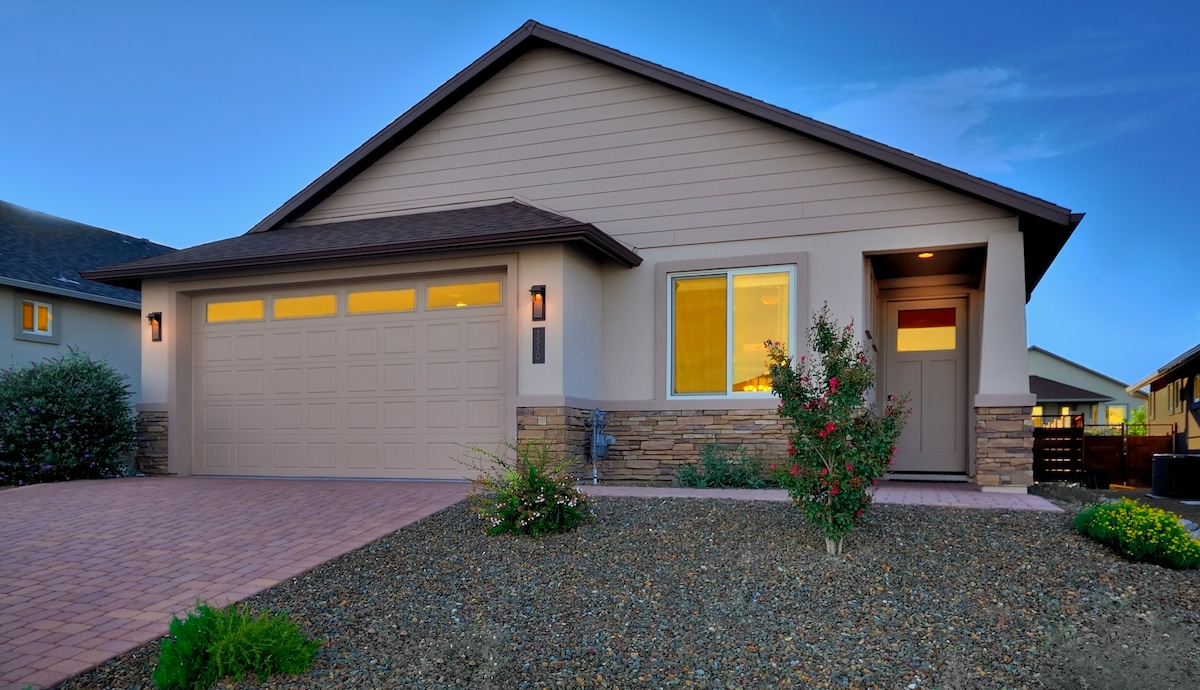 *Uusi king-vuode 9/22/25* Keskeisellä paikalla vain muutaman minuutin päässä Sedonasta, Jeromesta ja useista viinitiloista. Kävelymatkan päässä on maisteluhuone, naapuruston puisto ja vaellusreittejä, joilta on näkymät Sedonaan. Näe Mingus Mtn takapihalta. Nauti auringonnoususta kolibrien kanssa ja katsele tähtiä helposti yöllä, koska olemme osa pimeän taivaan yhteisöä! Rauhallinen ja rauhallinen, täydellinen tyttöjen matkoille, perhe-/pariskuntilomille, pienille retriiteille, hyvinvointiretriiteille tai Executive-majoituksiin. Matkailuauton pysäköinti. 2,5 tuntia Grand Canyonista