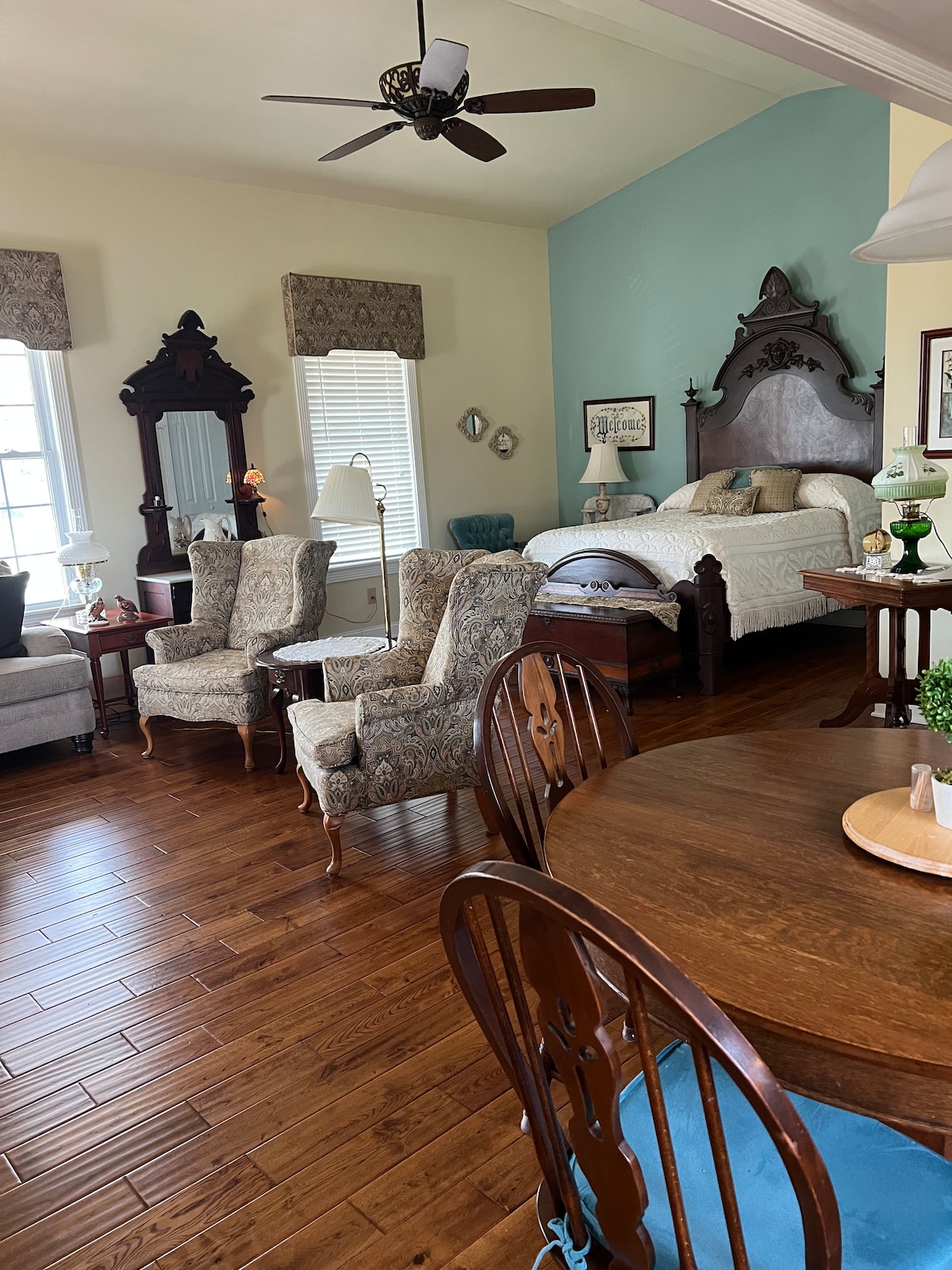 Sijaitsee vakiintuneessa naapurustossa, kirjaimellisesti Clarksvillen keskustassa. Alue on eristäytynyt metsistä, puroista ja joesta. Lähellä kahta golfkenttää. Asumme yläkerrassa, mutta kohteesi on erillinen "In-Law Suit". -yksityinen sisäänkäynti -keittiö -kahviasema -täysi kylpyhuone -pesukone ja kuivausrumpu - suuri TV (Netflix Hulu YouTube - tilauksillasi)! Kuulet meidät, kun siirrymme huoneesta huoneeseen yläkerrassa. Älä varaa, jos matkustat vähintään 2-vuotiaan pikkulapsen kanssa, koska yksikköä ei ole suojattu vauvalta.