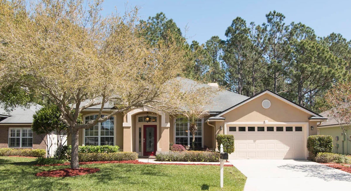 Nestled in historic Mandarin amongst birds and mature trees is our ultra private, elegant ranchette exuding style, comfort & tranquility. Soak in hot tub or relax under the 🌟.Corporate specials, certain dogs breeds for fee,EVENTS with Fee for weddings,reunions,etc. Need two kings? Add guests for fee. Convenient to I-295, dining, shops, museums, parks, and river. Bring your RV/boat with permission,marina 1 mile. Inside find large 4K TVs,coffee/tea bar all well stocked!Holidays 3 night minimum.