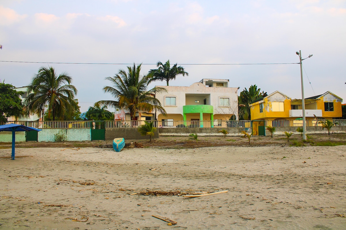 Paikka, jossa voit irrottautua kaupungista ja nauttia kauniista merestä. Vain 4 korttelin (5 minuutin kävelymatka) löydät yhden Ecuadorin kauneimmista rannoista. Talossa on kaikki mukavuudet, jotka tekevät kokemuksestasi parhaan mahdollisen. Hyvin jaetut tilat huoneissa, joissa on ilmastointi, varustettu keittiö, uima-allas, 2 pysäköintipaikkaa, TV-huone, parvekkeet ja kaunis pöytä ulkona uima-altaan vieressä. Ajatus kodin lämmöstä.