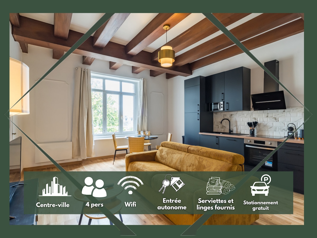Discover Old-World Charm & Breton Softness 🏡 — a spacious apartment with unique character, nestled in the heart of the magnificent Hôtel Particulier Lefort. With its high ceilings, ultra-comfy sofa bed, elegant bathroom, and bright, open living area, this haven invites you to breathe, relax, and truly unwind. 💖 Just 6 minutes from the historic center 🏰, 20 minutes from the beaches 🏖️… and one minute to fall in love! 😉