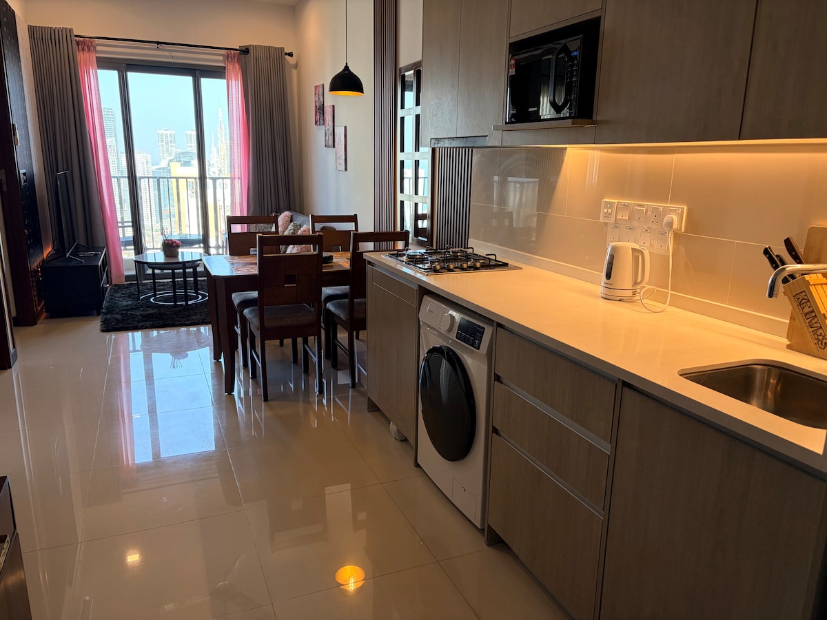 Tervetuloa Abeys Sky Residence at Tri-Zeniin, josta on upeat näkymät Lotus Toweriin Colombon 02-alueen sydämessä. Tässä modernissa yhden makuuhuoneen huoneistossa on queen-vuode, mukava vuodesohva, täysin ilmastoitu oleskelutila, varustettu keittiö, kylpyhuone, jossa on lämmin vesi, ja pesumahdollisuus. Vierailla on myös pääsy uima-altaalle, kuntosalille, lasten leikkialueelle ja katolla olevaan yhteiskäyttötilaan. Vain muutaman askeleen päässä kaupoista, ravintoloista ja liikennevälineistä, ihanteellinen sekä liikematkoille että vapaa-ajan majoittumisiin.