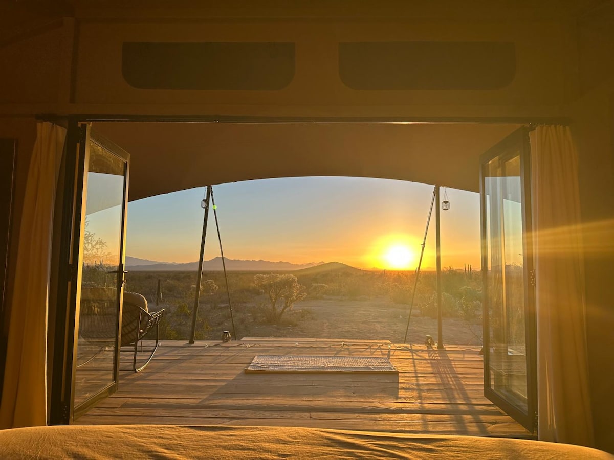 Relax in our Glamp near Saguaro National Park. We wish you a pleasant stay. Our Glamp is located just minutes from the entrance of Saguaro National Park West – one of Arizona’s most iconic natural wonders, known for its towering cacti and scenic trails. SaguaroGlamp is 100% off-grid and powered entirely by solar energy – offering a mindful, sustainable way to reconnect with nature. Here, you are fully immersed in nature.