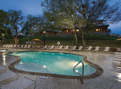 Tämä lomakeskus sijaitsee Austinin ja San Antonion välillä Texas Hill Countryn sydämessä, jossa on kumpuilevia kukkuloita, mutkittelevia jokia ja upeaa luontoa. Kahden makuuhuoneen Deluxe-huone: King-vuode isossa makuuhuoneessa, queen-vuode tai kaksi twin-vuodetta toisessa makuuhuoneessa, queen-vuodesohva olohuoneessa. Kaupunkatalotyylinen yksikkö, jossa on portaat sisällä. Suuri makuuhuone pohjakerroksessa. Enimmäismääräinen majoittujien lukumäärä on 6.