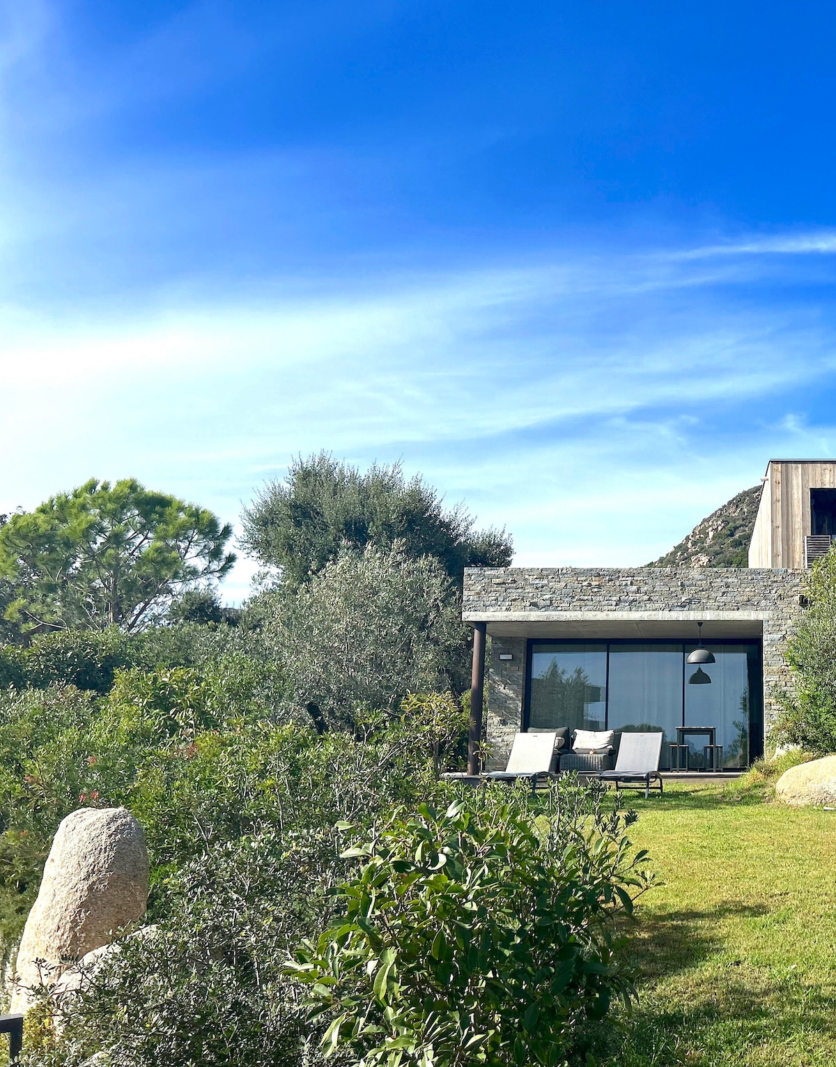 Tässä upeassa kivisessä 140 m2: n talossa on oma lämmitetty uima-allas Hiljainen, vain 5 miljoonan päässä Santa Giulian rannalta ja 10 miljoonan päässä Porto-Vecchion keskustasta Omakotitalossa on neljä makuuhuonetta ja neljä kylpyhuonetta. Olohuoneessa ja kolmessa makuuhuoneessa on ilmastointi ja tv Sauna, kuntosali, wifi-internet, Nespresso-kahvinkeitin, jääpalakone, kaasugrilli, solariumit