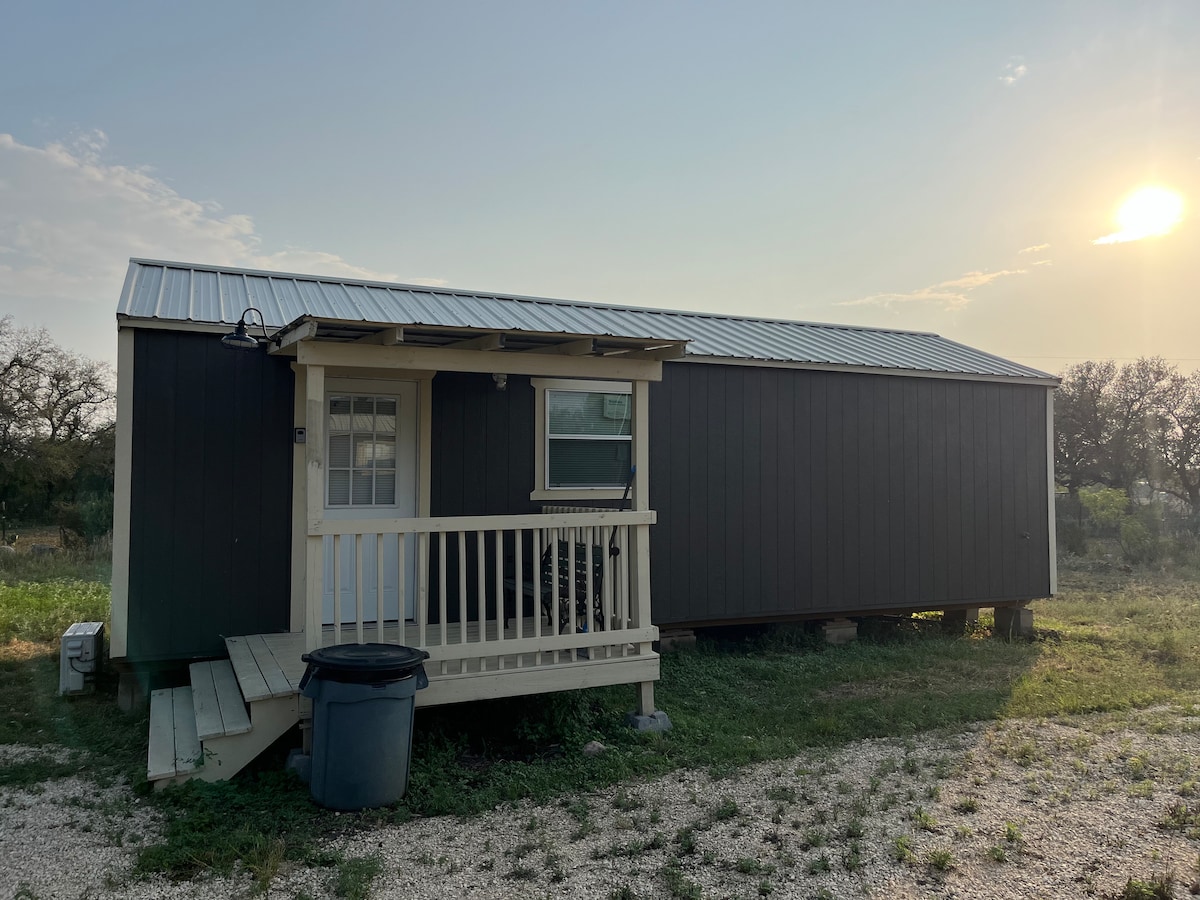 Pienin ja viihtyisin pieni kotimme (se on todella pieni!). Tämä valoisa ja ilmava, erittäin pieni yhden huoneen yksiö, jossa on minikeittiö (minijääkaappi ja mikroaaltouuni), sijaitsee aivan valtatien 83 vieressä, noin 3,4 mailin päässä Garnerista ja 3,3 mailin päässä Frio-joesta. Ei röyhelöitä paikka, joka sopii täydellisesti kahden ihmisen rentoutumiseen alueen tutkimisen jälkeen. Tämä on ainoa tinyhomeemme, jossa ei ole täyttä keittiötä, ja siellä on grillipaikka ulkona. 60 dollarin (USD) lemmikkimaksu koiraa kohti roturajoituksilla. Ei yli 50 paunaa painavia koiria