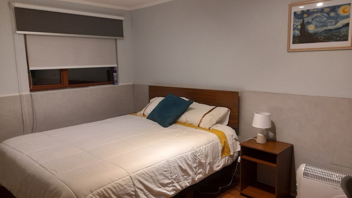 Huone, jossa on oma kylpyhuone, uudessa varustetussa huoneistossa, jossa on aamiainen, lähellä Concepcionin lentokenttää, josta on todella hieno näköala. Kaikki uudet laitteet, mukaan lukien työpöytä ja vaatekaappi. Jos haluat täyden ruoan, se veloitetaan erikseen.