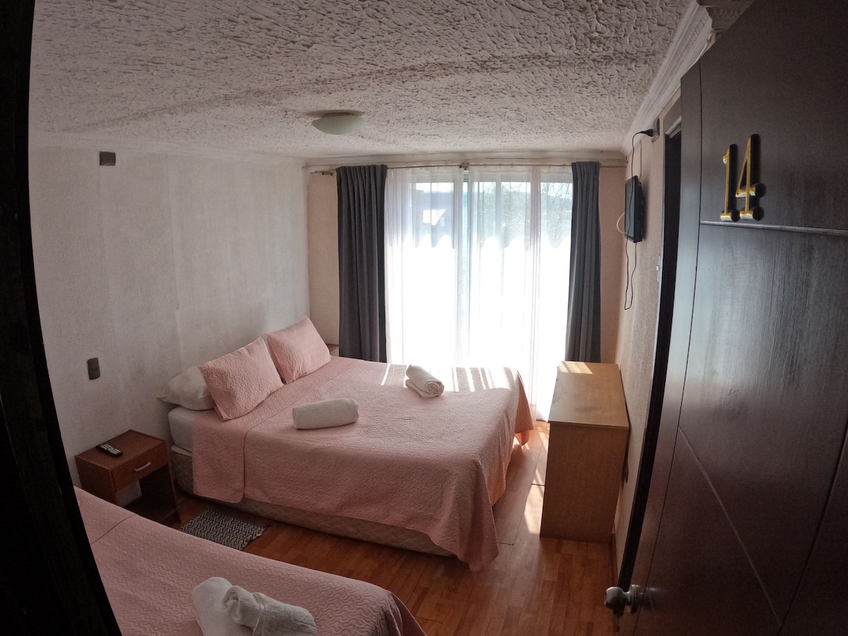 Nauti mukavasta ja miellyttävästä majoituksesta Concepciónin keskustassa, ja aamiainen sisältyy hintaan. Uusi huoneisto, jossa on yhden hengen vuode, työpöytä ja oma kylpyhuone makuuhuoneen ulkopuolella. Se sijaitsee kävelyetäisyydellä klinikasta, sairaalasta, bussipysäkiltä, supermarketeista, tiloista ja apteekeista, ja sieltä on erinomaiset julkisen liikenteen yhteydet. Aamiainen on itsehoitoa. Parhain terveisin!