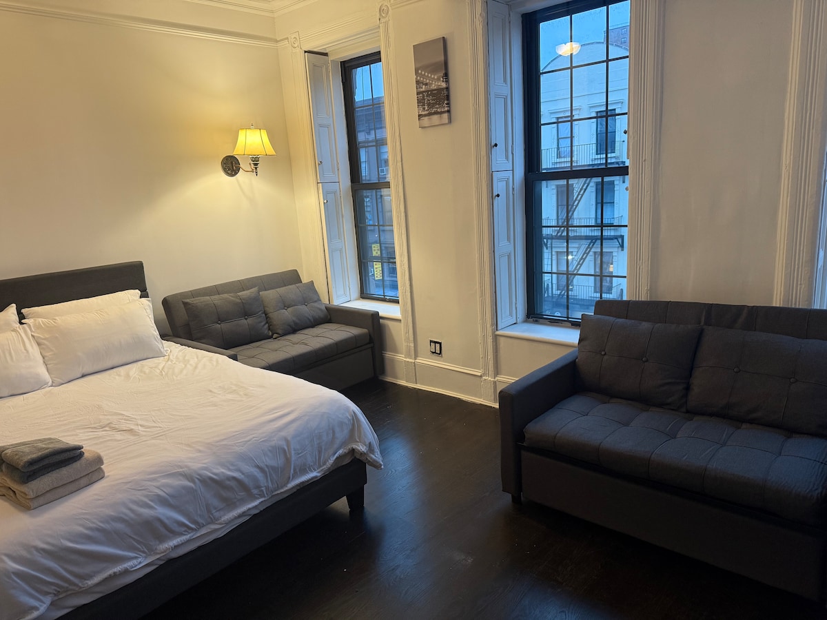 Tyylikäs, klassinen ja maalaistyylinen yksiö West Harlemissa! Tämä on oma yksityinen yksiö klassisessa New Yorkin ruskeakivitalossa, jossa on täysin varustettu keittiö, oma kylpyhuone ja hyvä WiFi. Kätevä Manhattanin sijainti: vain 4 korttelia metroon, 10 minuuttia Times Squaresta, 30 minuuttia keskustasta, kaikki kauniissa ja turvallisessa naapurustossa. Kopio henkilötodistuksesta vaaditaan ennen sisäänpääsyä.