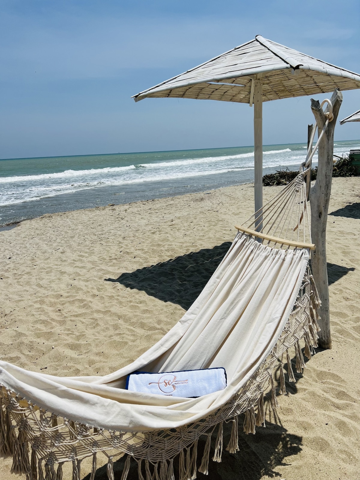 Está ubicado frente al hotel, hay que cruzar la pista para poder hacer uso de las instalaciones. Piscina, playa, bar, área de descanso. SE ALCANZA A VER EL MAR PERO NO ESTA FRENTE AL MAR MARIA JOSE BUNGALOWS ESTA SITUADO EN EL KM 1227.3 PANAMERICANA NORTE
