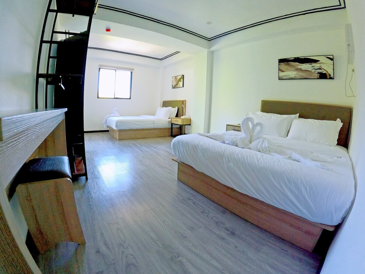 The biggest suite in Corto del Mar Hotel. Spacious Presidential Suite in central Coron featuring 2 bedrooms, 2 bathrooms, and a separate living room—ideal for families or small groups. Enjoy a large private balcony with a jacuzzi, perfect for relaxing after island tours. Fully air-conditioned with fast Wi-Fi and elegant furnishings. Conveniently located near town, restaurants, and tours, with attentive on-site support for a comfortable stay.