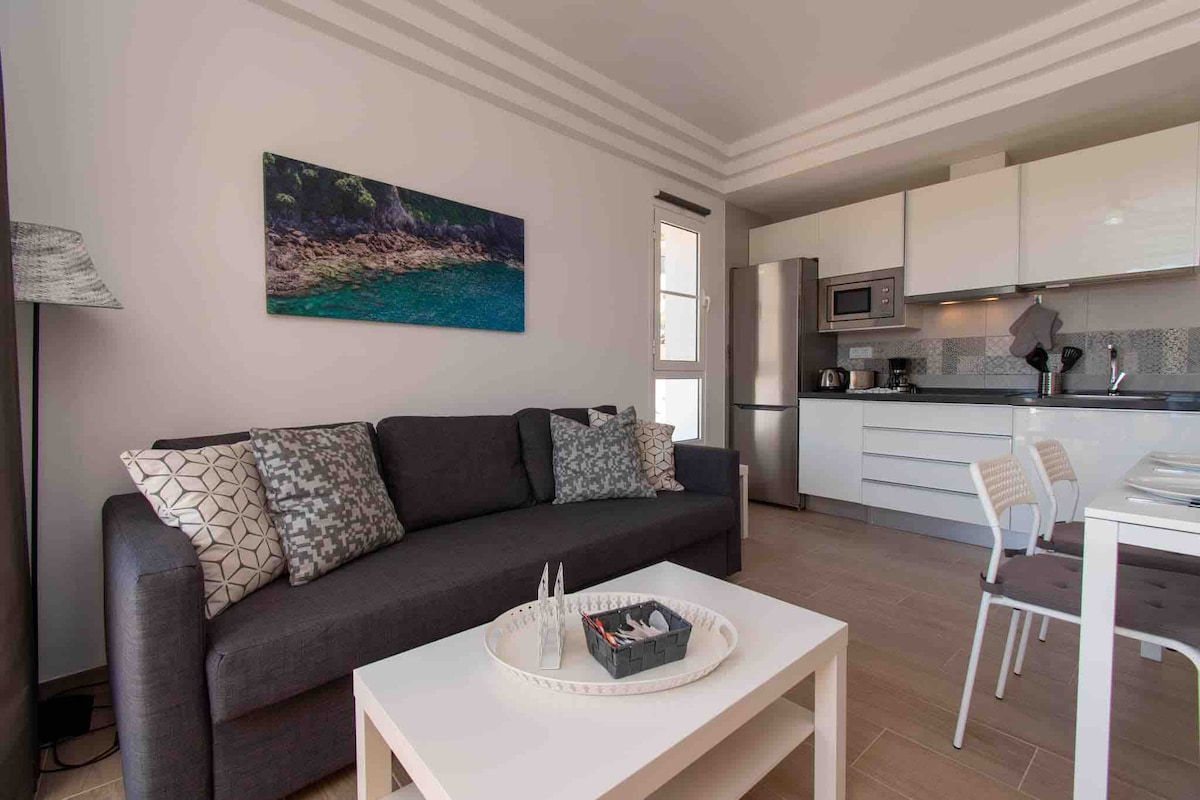Kaunis huoneisto, moderni, mukava, valoisa ja erittäin hyvin varusteltu . Yhteinen uima-allas, wifi, älytelevisio. Hyvin lähellä X Sur -ostoskeskusta sekä Mercadonan ja Hiperdinon supermarketteja, 1 km: n päässä vesipuistoista ja alle 1 km: n päässä saaren kauneimmista rannoista. Bussipysäkki portilla. Voit nauttia ilmastoinnin käytöstä lisämaksusta majoittumisesi aikana!