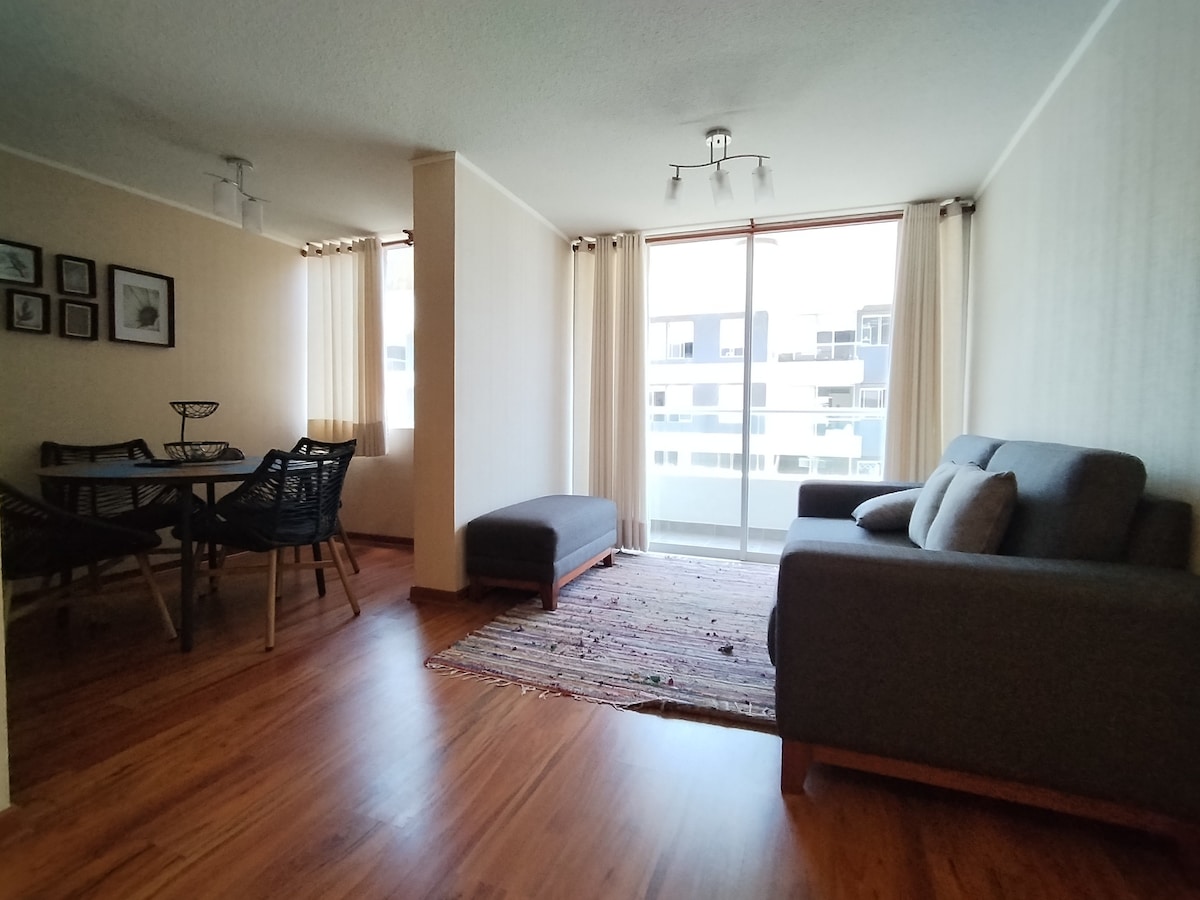 Ihanteellinen paikka majoittua, jossa on kaikki mukavuudet hyvään majoittumiseen. Rakennuksessa on yhteistyöalue. 20 minuutin päässä lentokentältä ja matkailupaikoista, kuten Larco-museosta, joka on yksi Latinalaisen Amerikan parhaista, ja Mateo Saladon huacasta. 10 minuutin päässä CC Plaza San Miguelin keskustasta ja Pueblo Libren historiallisesta keskustasta, jossa on paikkoja tutustua, syödä ja pitää hauskaa. TV:llä on Netflix-, Disney- ja Star+-palvelut
