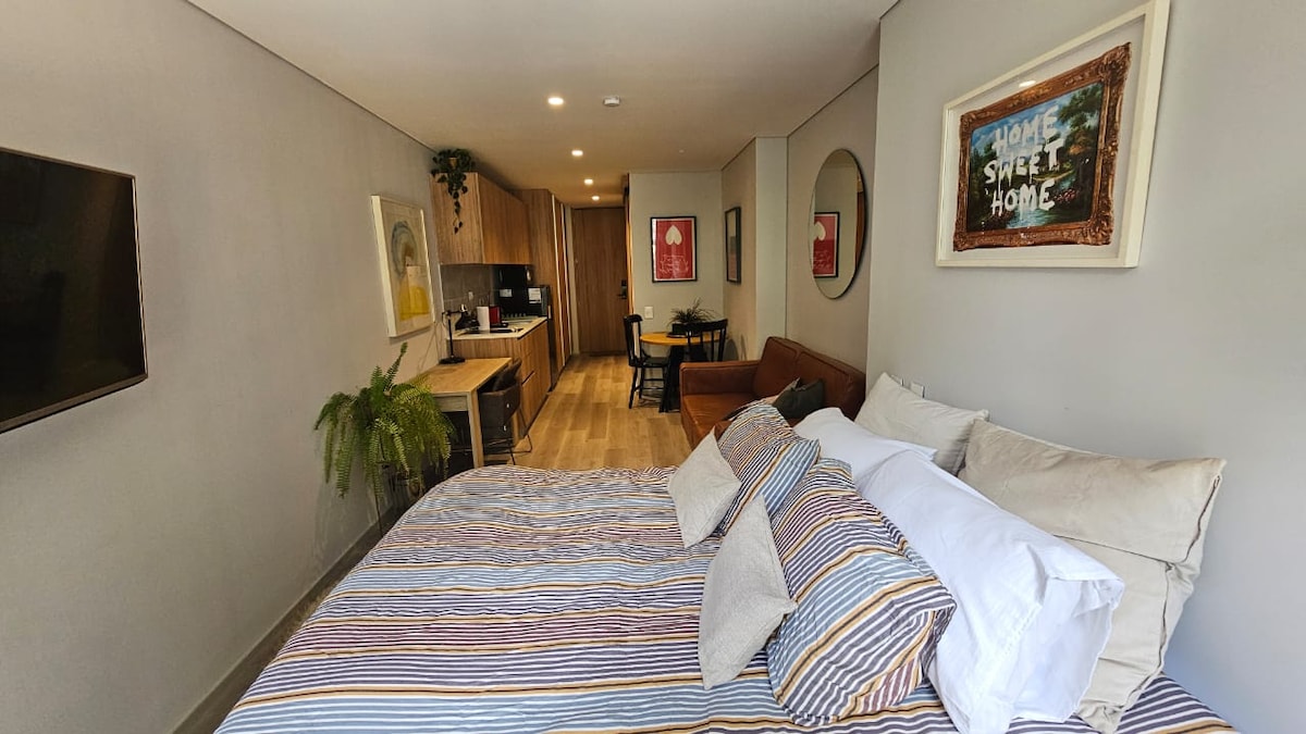 Upouusi design-loft, josta on puistonäköala Chicón sydämessä, joka on yksi Bogotán hienoimmista naapurustoista - vain muutaman askeleen päässä Parque 93: sta, parhaista ravintoloista ja kahviloista. Ympäröi vilkas kaupunkielämä, mutta täynnä luonnon rauhallisuutta aivan ikkunasi ulkopuolella. Harkitusti suunniteltu nykytaiteella, vehreydellä ja kodikkailla yksityiskohdilla. Sisältää täysin varustellun keittiön, nopean wifin, älytelevision ja suoratoiston sekä työtilan, joka sopii täydellisesti työ- tai vapaa-aikaan.