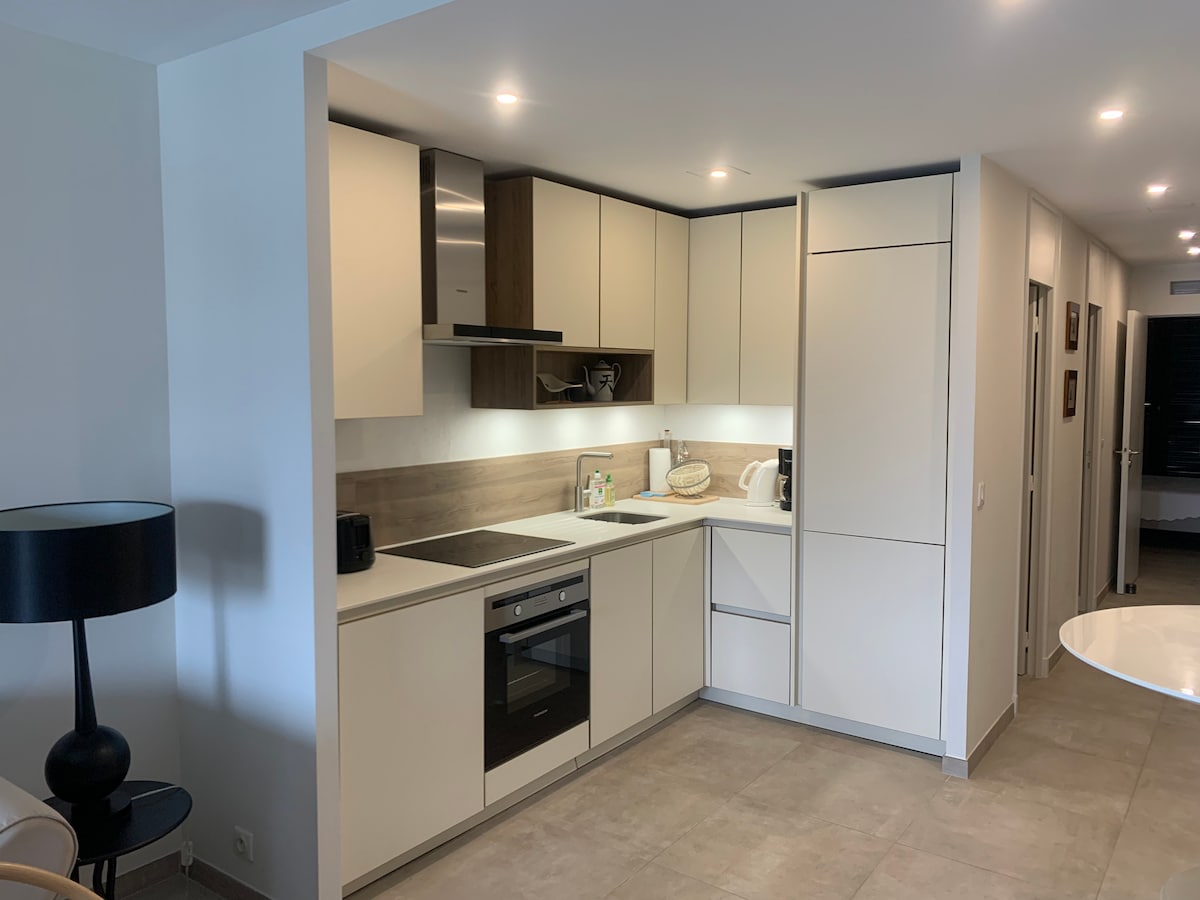 2 kaunista huonetta, terassi, ilmastointi, yksityinen pysäköinti