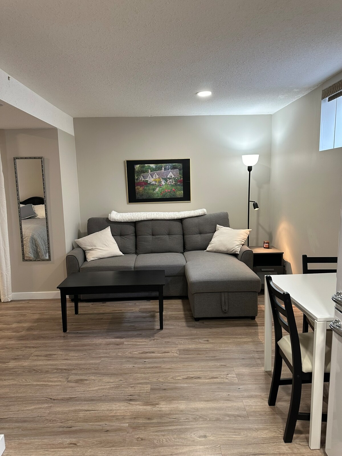 Tervetuloa upouuteen kellarista koostuvaan sviittiin, joka sijaitsee vain 5 minuutin ajomatkan päässä keskustasta. Koe avoimen studion mukavuus, jossa on täysin varustettu keittiö, WiFi ja TV. Nauti ilmaisista pesulapalveluista, kadun ulkopuolisesta pysäköinnistä yhdelle ajoneuvolle ja yksityisestä sisäänkäynnistä autotallin kautta. Tiukka tupakointi- ja lemmikkieläinkielto. Itsepalvelusisäänkirjautuminen näppäimistöjärjestelmällämme tarjoaa sinulle joustavuutta ja yksityisyyttä. Omistajat ovat paikan päällä tarvittaessa. Rentoudu tässä rauhallisessa ja tyylikkäässä tilassa.