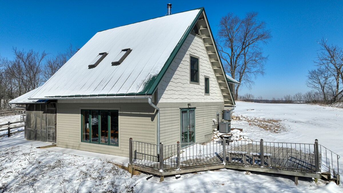 Asetu viehättävään maalaistaloon, joka sijaitsee laaksossa Driftlessin alueen kumpuilevien metsäisten kukkuloiden keskellä. Aloita päiväsi kupillisella paikallista kahvia kuistilla. Lähde pitkälle kävely- tai pyöräretkelle, palaa sitten mökille kokkaamaan, pelaamaan lautapelejä, kuuntelemaan levykokoelmaa tai vieraile Viroquassa (25 minuuttia) nauttimaan 5 tähden illallista, jossa ruoat ovat peräisin suoraan maatilalta, tai tutustumaan paikalliseen musiikkiin. Sytytä lämmin tuli ulkona/lämmitä kaasulieden ääressä sisätiloissa tai mene alas puroon saunaamaan viileän veden äärellä.