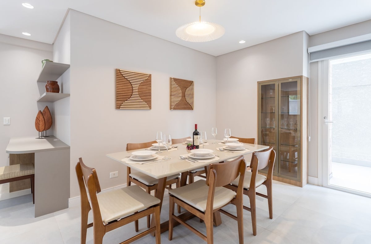 Discover refinement in this modern, sunlit studio in the heart of Batel, Curitiba's most upscale neighborhood. Perfectly designed for up to 4 guests, it features a double bed and sofa bed. Enjoy exclusive access to a pool, sauna, and gym. You're just steps from Shopping Pátio Batel, top restaurants, and bars. A perfect blend of comfort, style, and location.