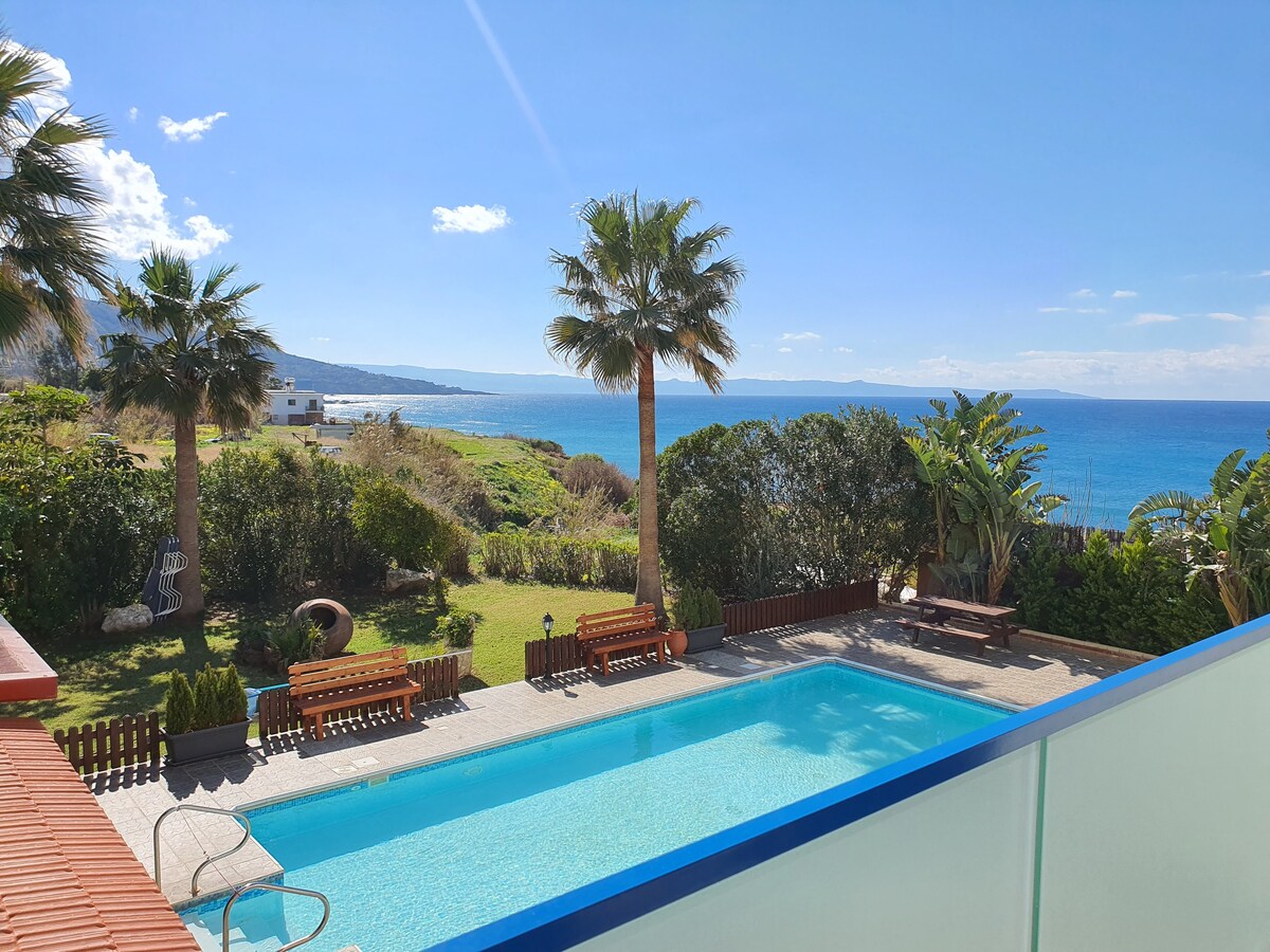 Astu rauhallisuuteen! Pakene aurinkoiseen piilopaikkaan rauhallisella rinteellä. Rentoudu uima-altaalla, nauti auringosta ja henkeäsalpaavista merinäkymistä ja kultaisista auringonlaskuista. Vain 15 minuutin ajomatkan päässä Pafosista sijaitseva kaksi viehättävää studiotamme ovat täydellinen tukikohta tutustumiseen. Rannat, luontopolut, satama, Blue Lagoon ja Pafoksen vanha kaupunki ovat kaikki 15–30 minuutin ajomatkan päässä. Ilmainen wifi, pysäköinti, kyläaukio tavernoilla ja viinibaari vain 4 minuutin ajomatkan päässä. Auto on välttämätön. Uima-allas on avoinna ympäri vuoden (ei lämmitetty).