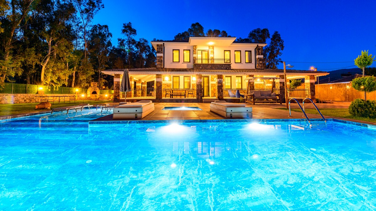 Kaupungin keskustassa sijaitseva huvila, jossa on yksityinen uima-allas ja poreallas