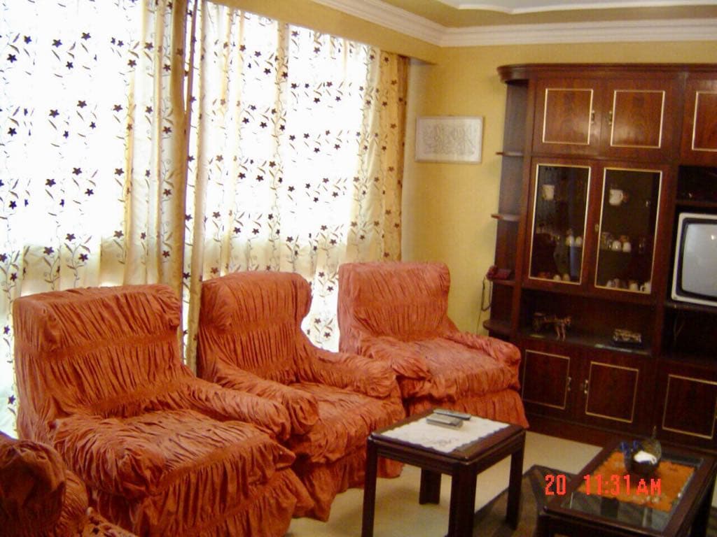 Moderni, hotellitasoinen 2 makuuhuoneen huoneisto Star-rakennuksessa, joka on 2. rivillä Maadi Cournishe-Nilellä. Huoneisto on erittäin mukava, täydellinen ilmastointi, kahvinkeitin, äly-tv. Kaiken kaikkiaan siellä on hotellin tunnelma pienemmillä kustannuksilla ja suuremmalla tilalla. 5 minuutin kävelymatka Niililtä, kahviloilta, ravintoloilta ja Main maadi Cournishe Nile -kadulta. Palvelut, ravintolat, pesula ovat saatavilla toimituksena ovelle sekä kävelyetäisyydellä. Nauti rentouttavasta majoittumisesta keskeisellä paikalla, upea näkymä Niilille.