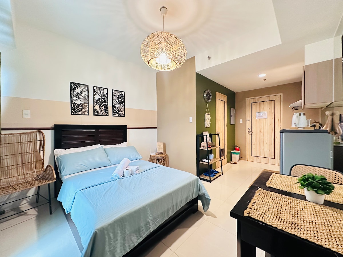 Tervetuloa Luxe Studioon – missä tyyli kohtaa mukavuuden Astu tyylikkääseen, harkiten suunniteltuun studioon Davaon sydämessä, vain muutaman askeleen päässä Abreeza Mallista. Tämä tila on suunniteltu auttamaan sinua rentoutumaan, olitpa sitten siemaillen viiniä baarissa, nauttimassa Netflixistä älytelevisiosta tai katsomassa kaupungin valoja yksityiseltä parvekkeeltasi.