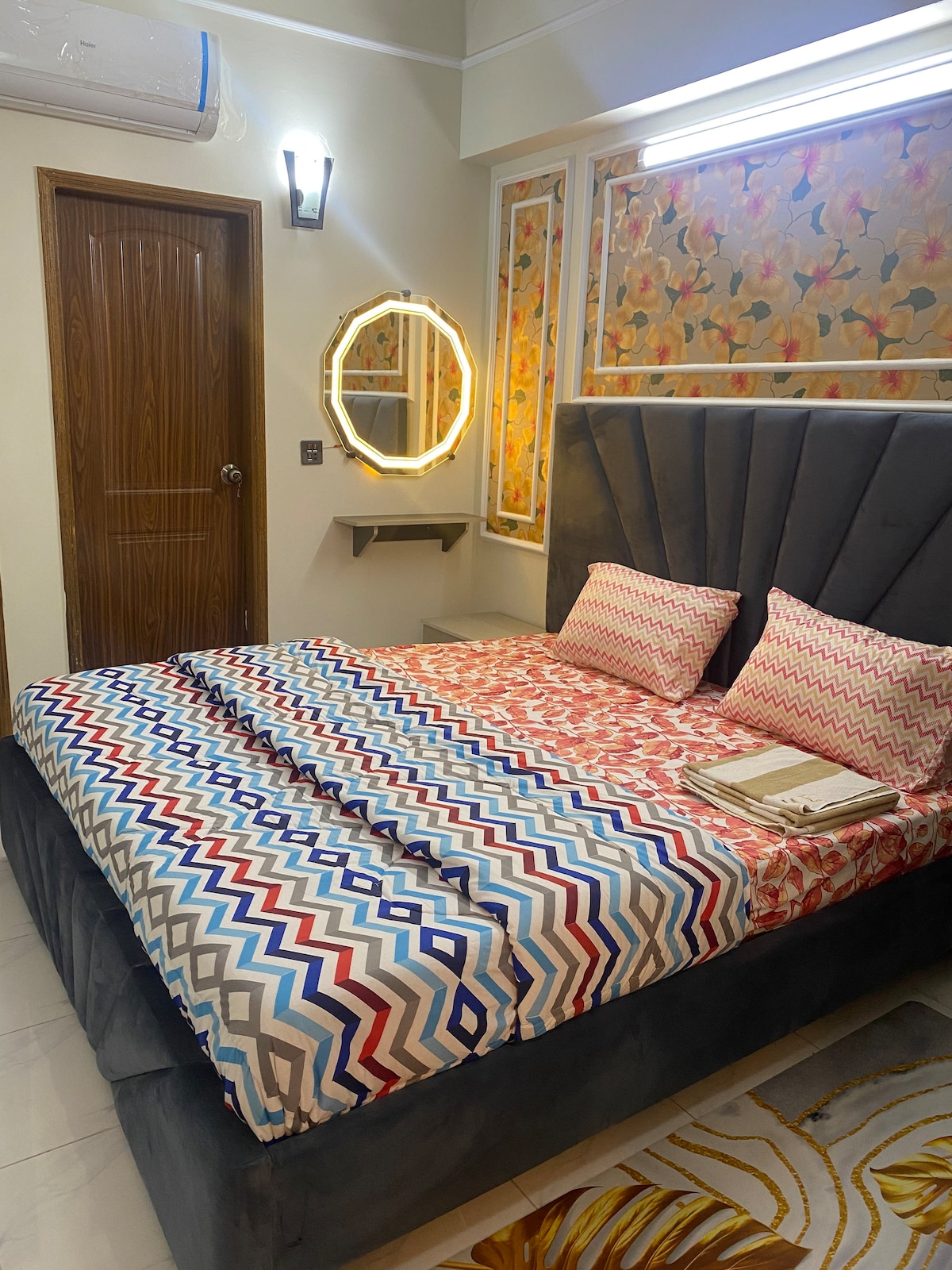 Enjoy your stay at this safe and stylish serviced apartment with all needful amenities. Located in the posh area of Karachi, this space guarantees access to the raving nightlife of Karachi as well as close proximity to amazing and renowned eateries the city has to offer. Bonus perks: ATM, supermart, park and gym on walking distance. Beach at a couple of minutes distance.