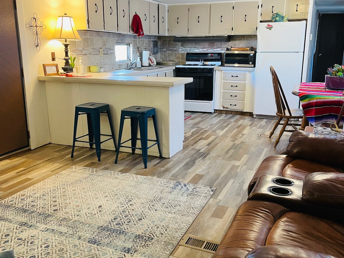 Almost Home Wildlife Oasis on pieni karjatila lähellä San Felipe Creek -jokea, joka sijaitsee Laughlinin ilmavoimakaartalon ja Del Rion keskustan välissä. Tässä upouudessa mökissä on kylpylämäinen tunnelma rentouttavaa lomaa varten. Ulkopuolella on nuotiopaikka, grilli ja karjasäiliö, joka on muunnettu uima-altaaksi. Kävelyreiteillä näet peuroja, kaneja, maakyyhkyjä ja joitakin ihania maatilan eläimiä aivan mökin ulkopuolella, ja ihastut tähän ainutlaatuiseen Del Rio -elämykseen! (Eläinten tuominen on kielletty luonnonvaraisten eläinten vuoksi.)