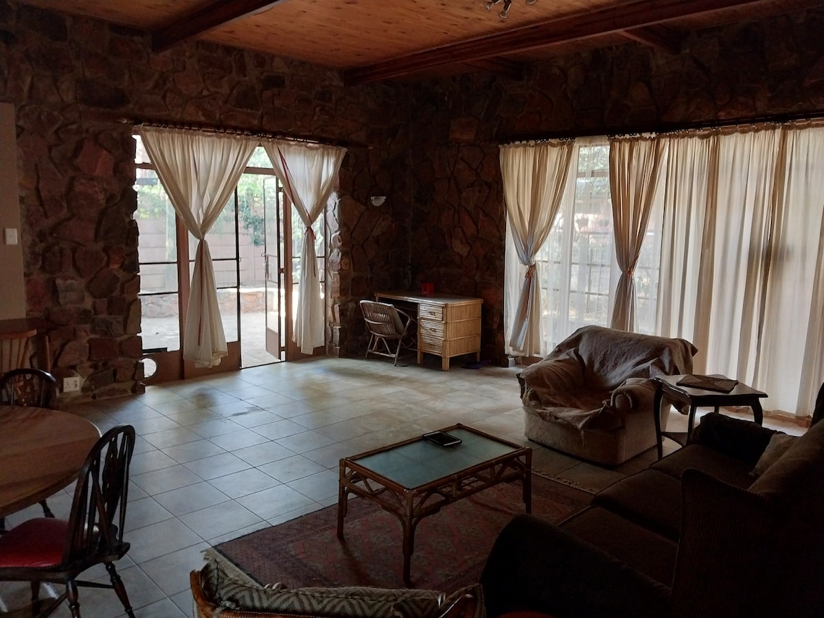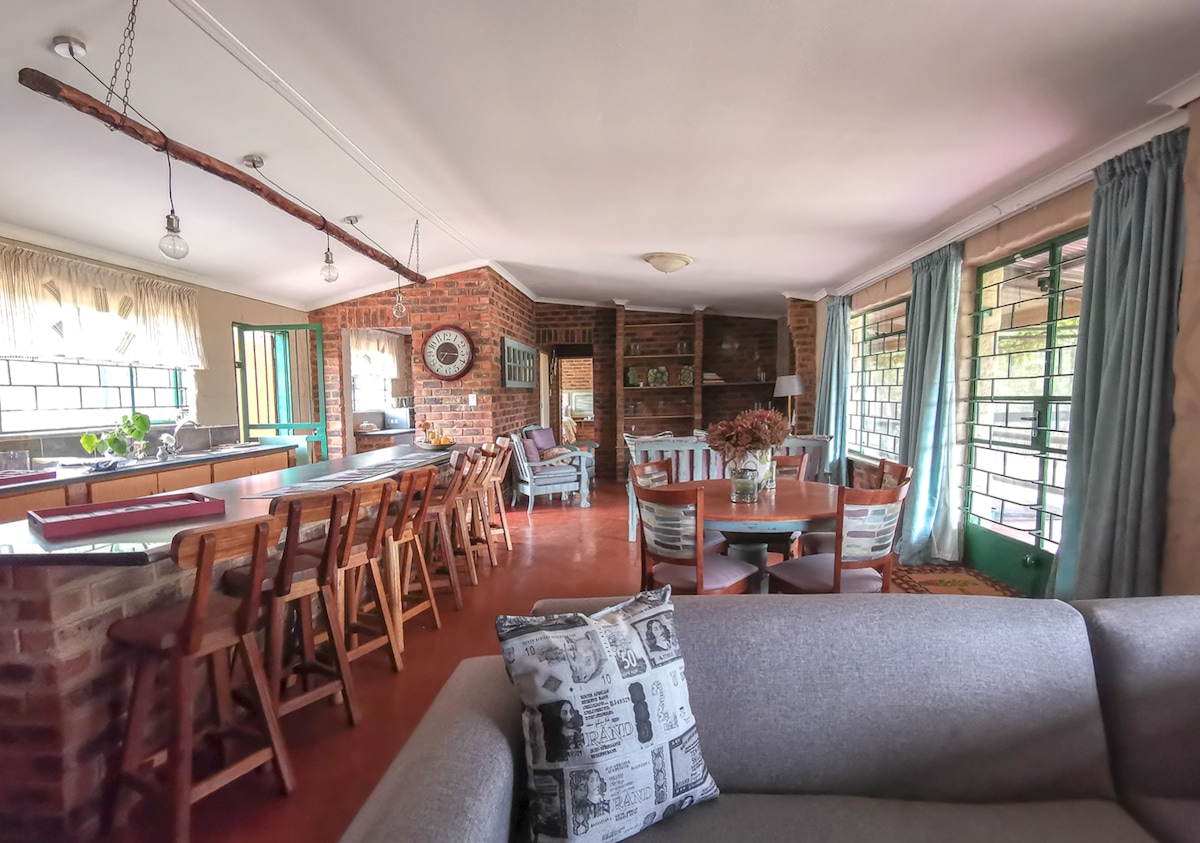 4 makuuhuoneen talo, jossa on uima-allas, viihdealue, braai, rajoittamaton wifi, generaattori, DStv- ja Netflix-tilaus. Tämä kohde sopii perheille ja ystäville, jotka etsivät yksityistä lomakohdetta. Koe molempien maailmojen parhaat puolet – rauhallinen maatila, josta on helppo pääsy ostoskeskuksiin ja ravintoloihin. Nauti valtavasta perhekokoisesta maalaistalosta! Vain 30 minuutin päässä O.R. Tambo -lentokentältä. Maatilalla voit nauttia upeista auringonlaskuista.