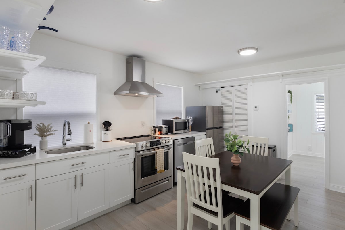Tervetuloa lomakohteeseesi, joka on täynnä aurinkoa ja hauskaa, jossa voit rentoutua Delray Beachin trooppisen ilman ja sinisten vesien äärellä. Voit nauttia hyvin varustetusta, äskettäin remontoidusta vierastalostamme, joka on rakennettu vuonna 1929 ja sijaitsee Delrayn historiallisessa keskustassa. Elä paikallisten tavoin, kun nautit pyöräretkestä tai iltakävelystä vilkkaaseen keskustaan ja kauniille rannoille. Mukavuuksiemme ja erinomaisen puhtaudemme ansiosta koet mukavuuden, jota hotellit tai muut Airbnb-kohteet eivät tarjoa