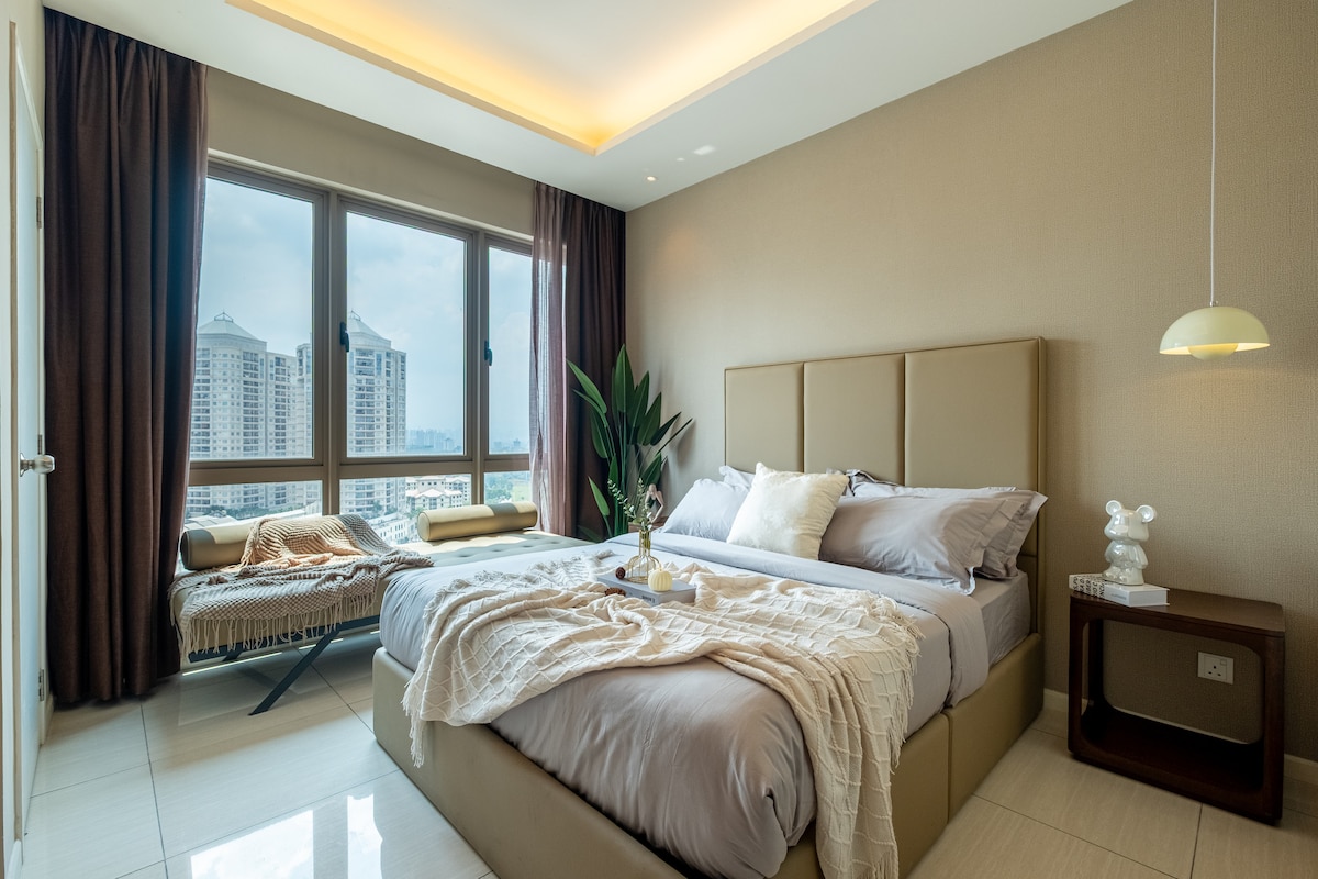 Posh | Premium 1 makuuhuone, jossa on lämpöä Tämä valoisa ja lämmin yhden makuuhuoneen kohde on täydellinen yksin matkustaville tai pariskunnille. Se on varustettu huolellisesti ensiluokkaisilla mukavuuksilla, ja se on ihanteellinen enintään kahdelle vieraalle pitkäaikaisiin majoittumisiin (tai kolmelle lyhyisiin vierailuihin). Sijaitsee turvallisessa, korkealuokkaisessa Mont'Kiara-alueella ja on suoraan yhteydessä Sunway 163 Mall -ostoskeskukseen. Nauti äärimmäisestä mukavuudesta, kun kauppoja, ravintoloita ja elintarvikkeita on ovellasi.