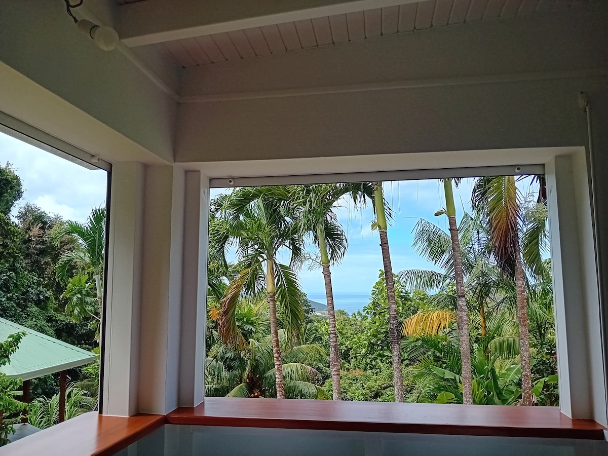 Tiny House sijaitsee kukkulalla 400 metrin korkeudessa hedelmätarhan keskellä. Sille pääsee hyvässä kunnossa olevalla metsätiellä. Rauhallinen ja eristynyt paikka meren ja vuorten välissä, josta on hallitseva näkymä. Luonnollisesti viileä ja ilmastoitu asunto ilman hyttysiä. Ekologinen asunto. Sijaitsee 10 minuutin päässä Lerouxin rannalta 20 minuutin päässä Malenduren rannalta 20 minuutin päässä Grande Ansen rannalta Sopii ihmisille, jotka haluavat irrottautua, levätä tai ladata akkuja.