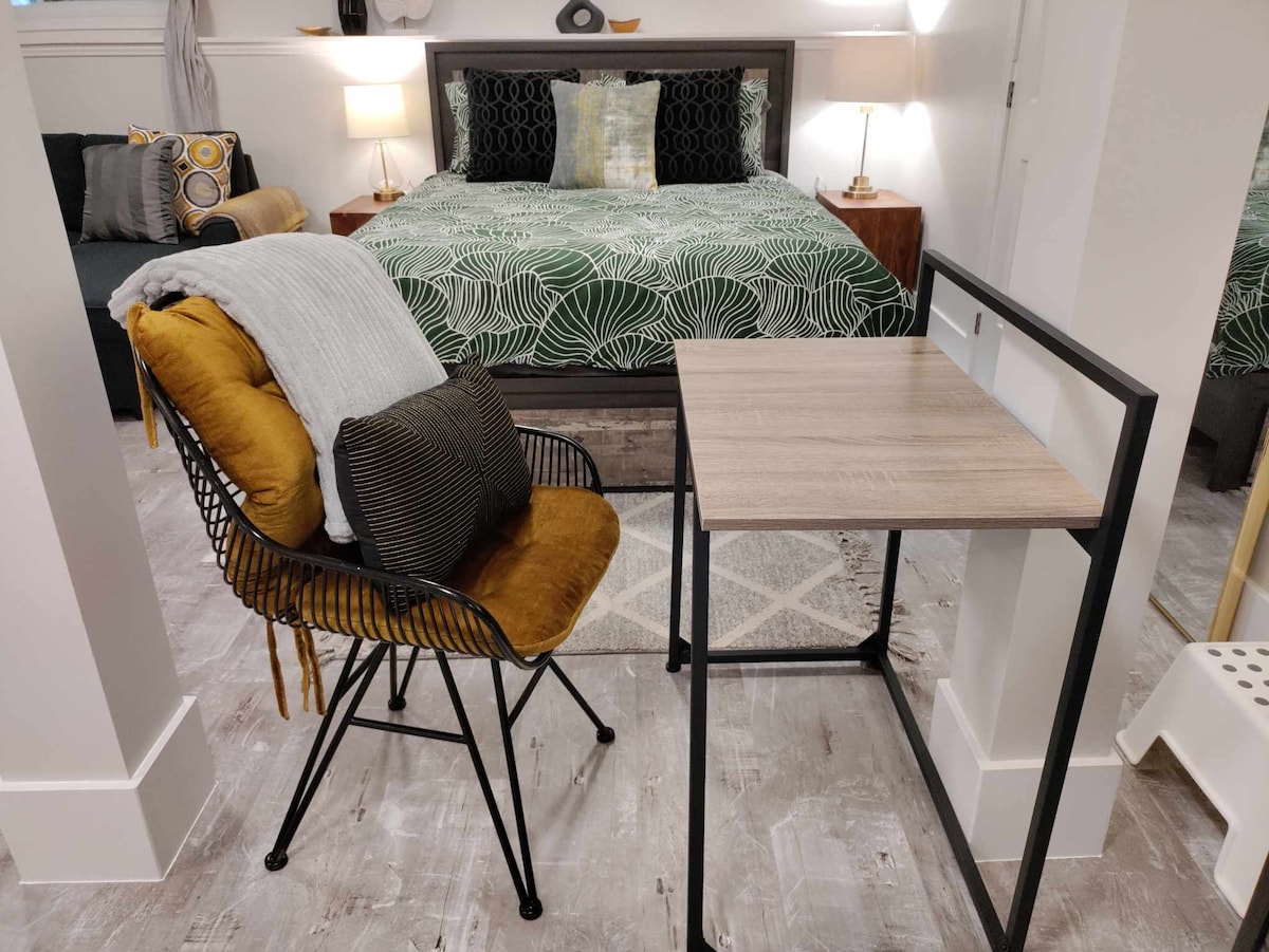 🌿 Ylellinen vihreä sviitti – rentoudu ja valmistaudu seuraavaan esitykseesi. Löydät vehreää inspiraatiota näistä vihreistä huoneista (eikä siivousmaksua*) 🏡 Tämä äskettäin rakennetussa, perhekeskeisessä kuvernöörin Brook-naapurustossa sijaitseva sviitti on suunniteltu kiinnittäen tietoisesti huomiota yksityiskohtiin ja suunnitteluun. Korkeat katot tässä uloskäynnissä ylläpitävät tilavan tunteen kompaktissa tilassa, jossa on keittotila, työasema, poreallas ja paljon muuta... (*poikkeustapauksissa saatetaan periä maksuja)