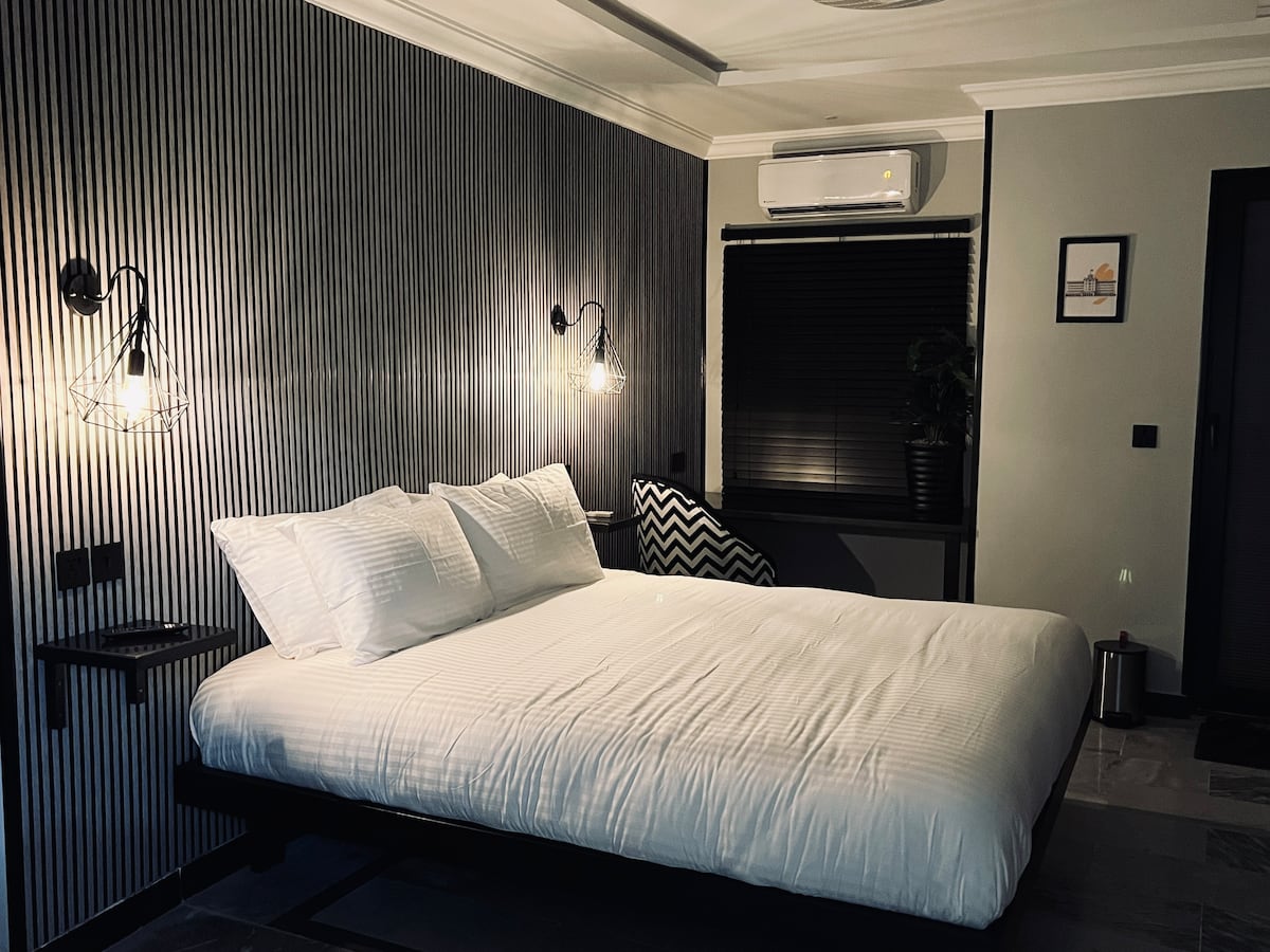 Tervetuloa moderniin lomakohteeseen – yhden makuuhuoneen huoneistoon, jossa on infinity-allas ja joka sijaitsee Giga Mallin vastapäätä DHA Islamabadin sydämessä. Nauti ylellisestä majoituksesta, jossa on tyylikäs sisustus, täysin varusteltu keittiö, älytelevisio, nopea wifiyhteys ja pääsy upealle kattoterassin infinity-altaalle. Täydellinen liikematkailijoille, pariskunnille tai pienille perheille, jotka etsivät mukavuutta, kätevyyttä ja tyyliä vain muutaman askeleen päässä Giga Mallin ostos- ja ruokapaikoista.