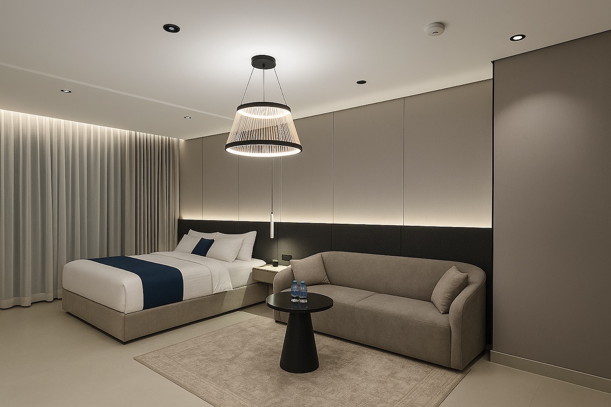 Tässä studiossa on rauhallinen ja rentouttava tunnelma, joka on suunniteltu huolellisesti tarjoamaan kaiken mukavuuden ja ylellisyyden. Kun astut sisään, tunnet välittömästi rentoutumista lämpimän valaistuksen ja harmonisen tilan ansiosta, joka yhdistää yksinkertaisuuden ja tyylikkyyden.