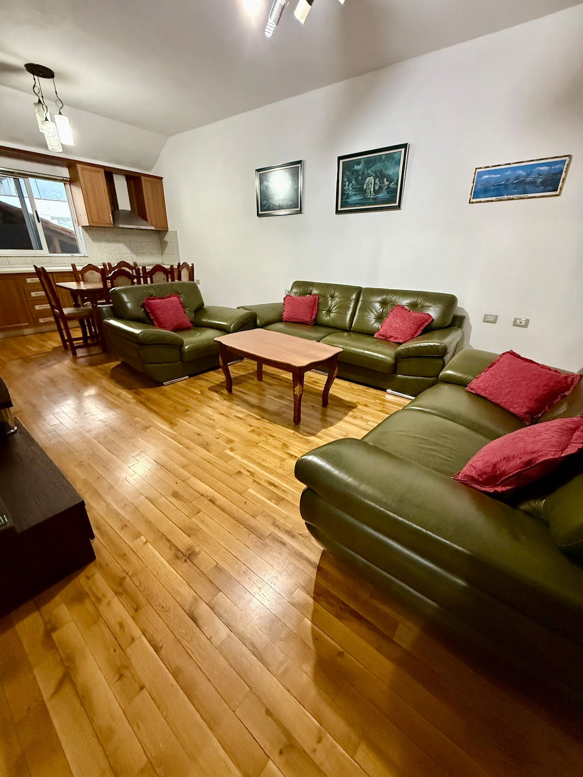 Welcome To Our Apartment. Escape the hustle of everyday life and immerse yourself in commodity at our peaceful and spacious guesthouse. Perfectly located in a safe neighbourhood 15 min drive away from the centre of Tirana and just 5 min away from the only cable car in Albania. In addition just 30 min away from the national park “Dajti Park”. The perfect location allows you to experience both the amazing nightlife of Tirana and the national beauty.