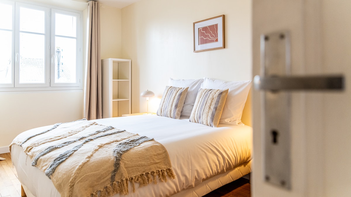 ITSENÄINEN SAAPUMINEN 24H/24 ILMAINEN PERUUTUS viimeistään 5 päivää ennen saapumista Yksinkertainen PYSÄKÖINTI 2–5 MINUUTIN KÄVELYMATKA RAUTATIEASEMALLE, PLACE DARCYLLE, RAITIOTIEASEMALLE, PALAIS DES DUCS -PALATSILLE, KAUPUNGIN HISTORIALLISEEN KESKUSTAAN Tämä tyylikäs ja elegantti huoneisto sijaitsee aivan keskustassa. Tämä 40 m2:n sviitti on kunnostettu ja varustettu täydellisen tasapainoisesti ylellisyyden ja hienostuneisuuden välillä, ja siitä on henkeäsalpaava näkymä Saint-Bénignen katedraaliin. Puupaneelit, paljaat kivet, silkkiset tekstuurit... Dijon paljastaa kauneutensa!