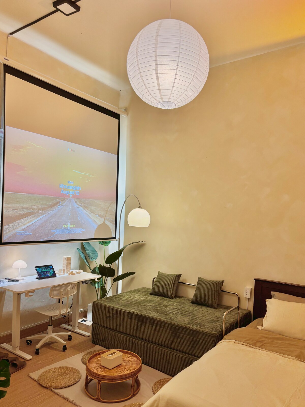 Komorebi @ Cozinema tarjoaa kolme lyömätöntä ominaisuutta: 1. Ensiluokkainen sijainti: Ho Chi Minhin kaupungin sydämessä, 1 minuutin päässä Bui Vien Streetiltä ja 5 minuutin päässä Ben Thanhin markkinoilta. Ympärillä on kahviloita, paikallisia ruokapaikkoja ja julkinen liikenne aivan ovellasi. 2. Näkymät taivaanrantaan ja puistoon: Nauti tuulisesta parvekkeesta, jolta on näkymät 23/9-puistoon, jossa vehreä kasvillisuus yhdistyy upeisiin kaupunkien taivaanrantaan valoihin yöllä – täydellinen tasapaino rauhallisuutta ja eloisuutta. 3. Elokuvamainen lomakohde: 100" 4K-projektori ja Dolby 5.1 -ääni täydelliseen rentoutumiseen.