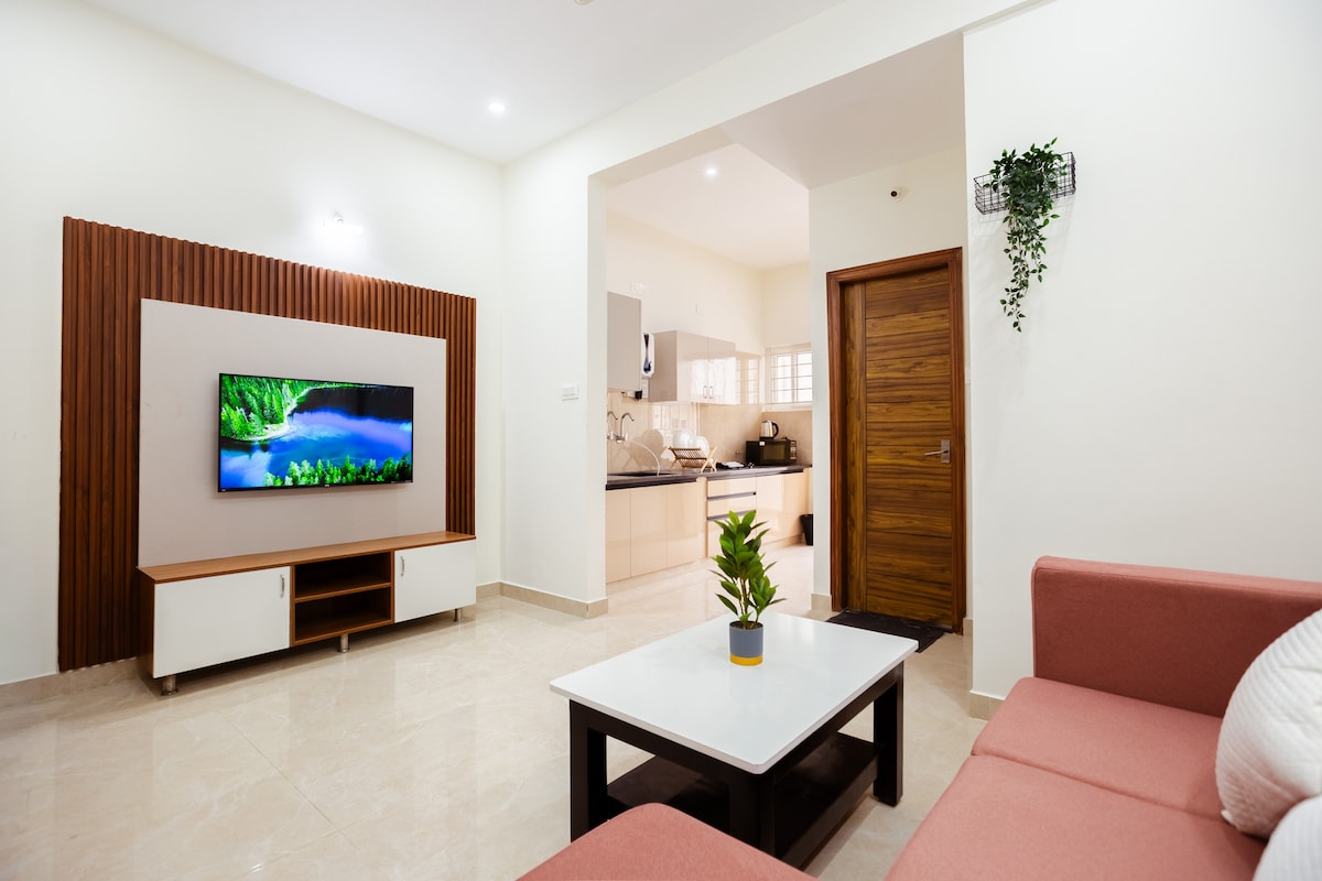 Tervetuloa Auraan – yksityiseen 1BHK-erillistaloon Akshayanagarissa, DLF AB Roadin takana. Nauti nopeasta WiFi-yhteydestä, älytelevisiosta, täysin varustetusta keittiöstä, queen-vuoteesta ja lämpimästä vedestä. Täydellinen yksin matkustaville, pariskunnille, pienille perheille ja liikematkailijoille. Lähellä teknologiapuistoja, Menakshi Mallia, Bannerghatta Roadia, kahviloita, supermarketteja ja liikennevälineitä. Turvallinen, rauhallinen ja ihanteellinen lyhyisiin tai pitkiin majoittumisiin.